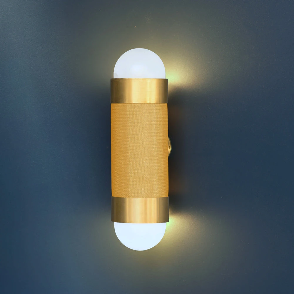 The LOOM pendant light, part of the LOOM collection features a beautiful woven brass cylinder topped with hand-brushed brass sleeves and completed with soft-white opal glass domes. When illuminated the LOOM emanates a soft, warm glow through the brass weave, complimenting the main illumination from the from the glass domes.