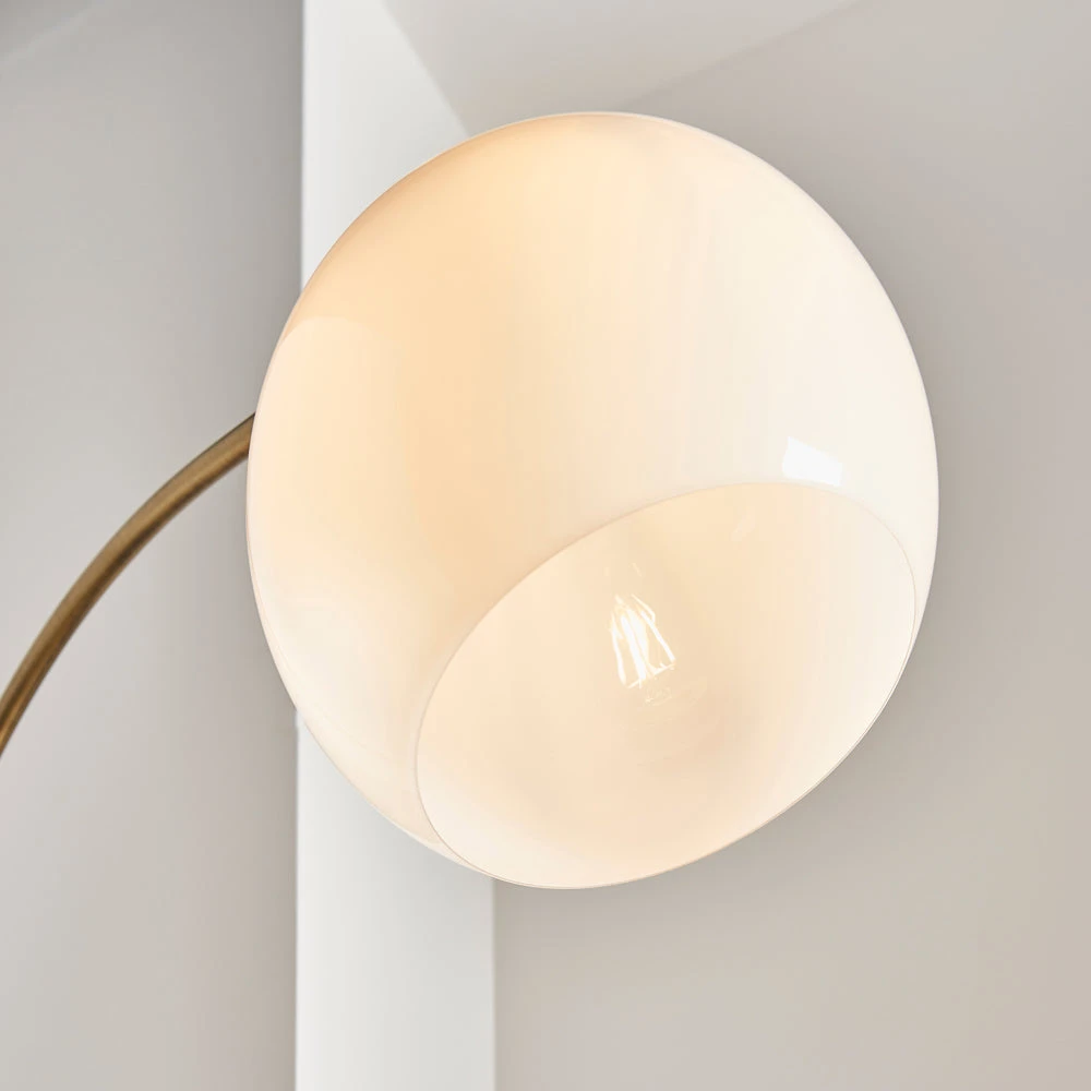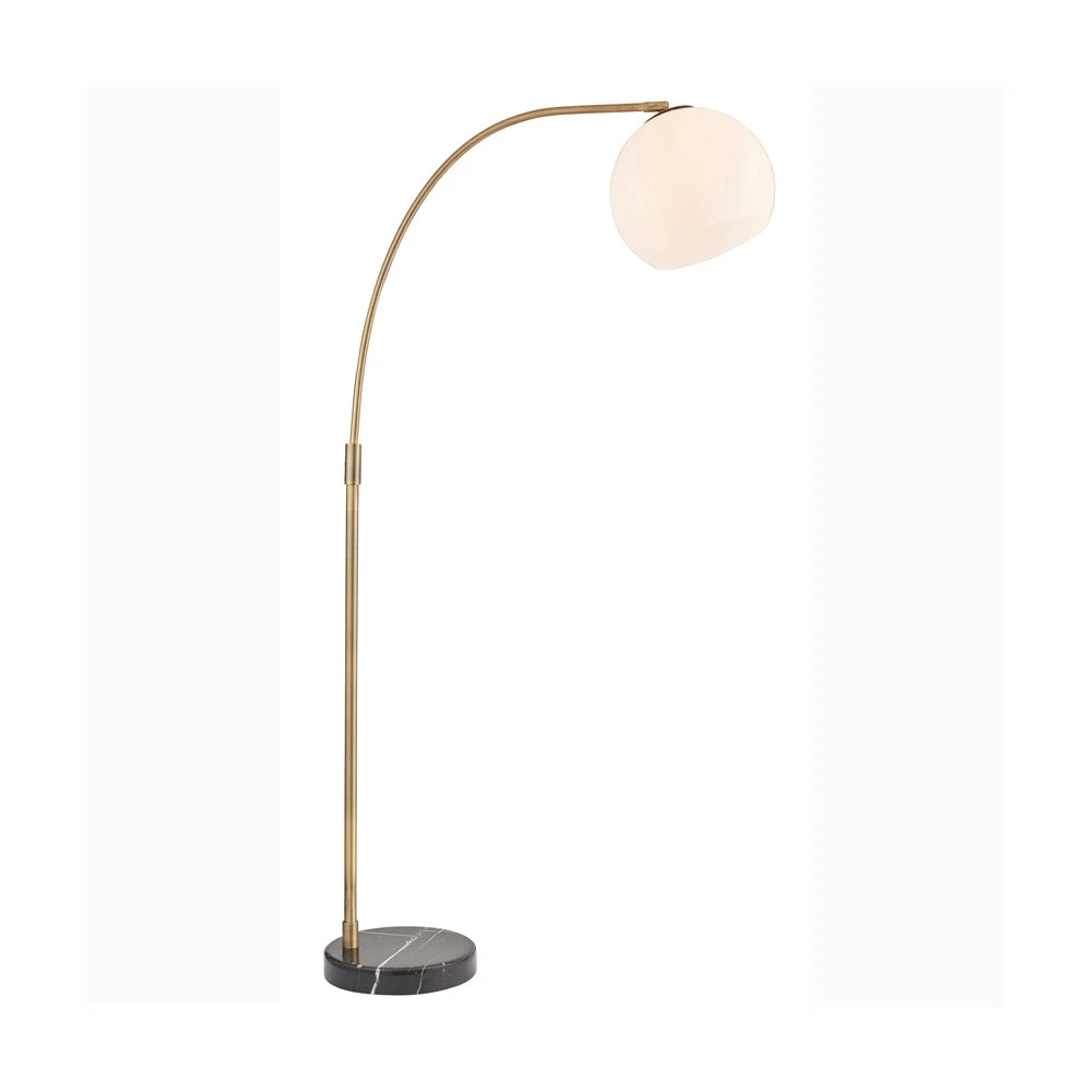 Create an ‘on-trend’ look with the Otto floor lamp. The combination of gloss white glass, antique brass plated metalwork and the black marble base completes the smart Scandinavian look. Create the perfect illumination when paired with filament LED lamps.