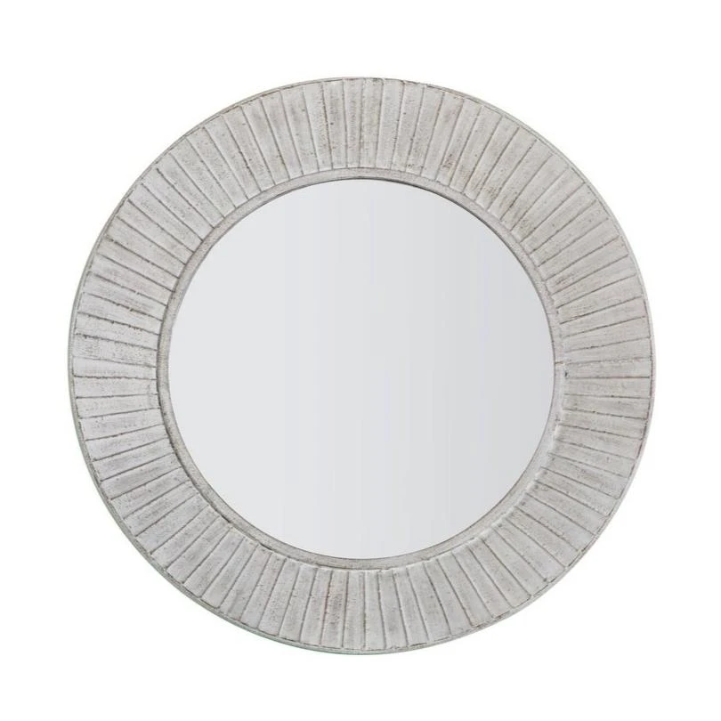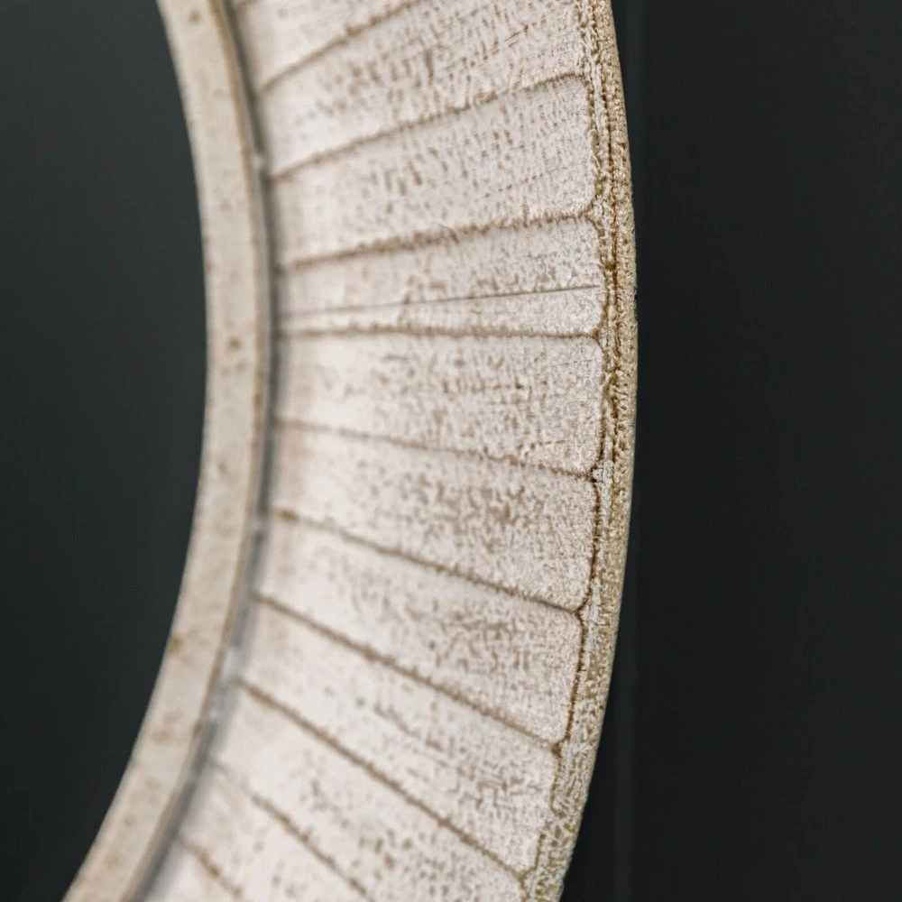 Introducing the Gallery Interiors Ramlia Mirror in White – a stunning piece of homeware that is sure to bring a unique touch of style to your living space. This mirror is not your average functional household item – it is a work of art that will be sure to catch the eye of anyone who enters the room. The mirror boasts an artistic circular frame that surrounds it, creating a beautiful and contemporary style that is sure to make a statement in any home decor style.