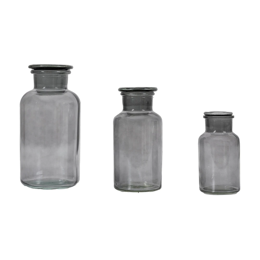 With a vintage feel, this apothecary style jar combines practicality with style, perfect for storage around the house. The simple shape in smoky grey glass has a beautiful antique feel. Also available in brown, green and clear.