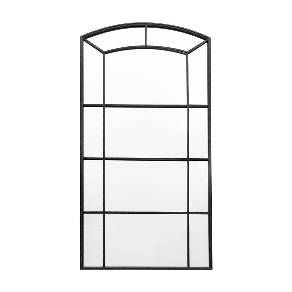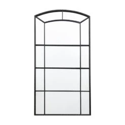 Arched window pane style mirror with contemporay black metal frame to add a touch of style to your wall.