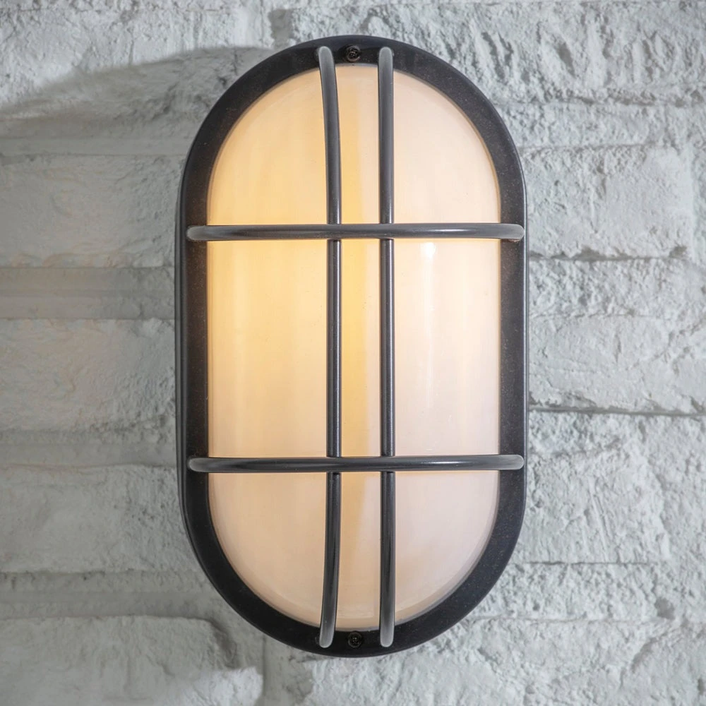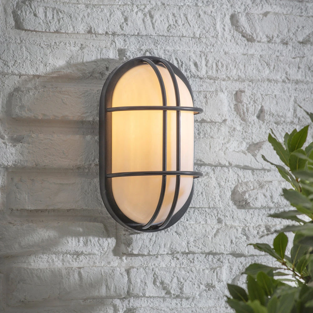 With its nautical appearance the Carbon Bulkhead Light will add a modern twist to exteriors. Fully weatherproof, its caged body is crafted in steel and a thick glass shade allows light to emit whilst protecting the bulb. This striking wall light makes a style statement and would suit all manner of homes, garages, potting sheds and even the conservatory or bathroom!Â