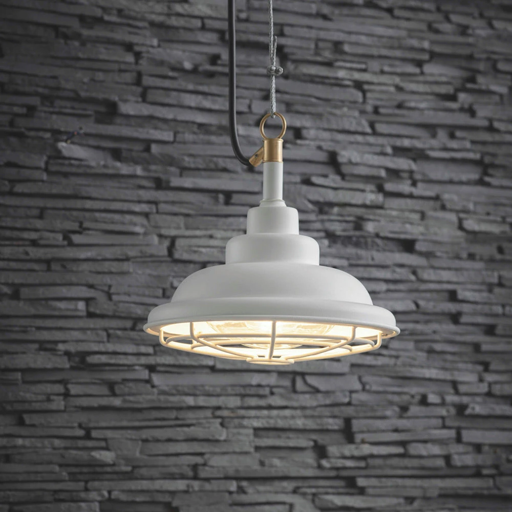 Mixing nautical style with function, the Mariner’s layered shade and cage in Lily White is contrasted with a raw cast brass connector. Outdoors its suited for use in the porch, in a pergola or over a garden dining table but can also be styled above a kitchen island, in the hallway or bathroom.