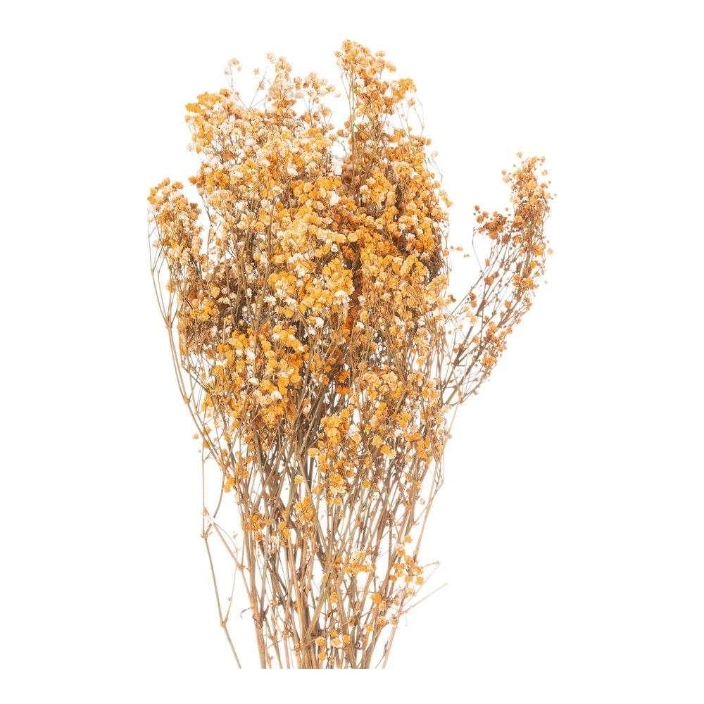 This is the Dried Orange Baby’s Breath Bunch. The natural, dried texture of this item is a great fit for those looking to create a warm neutral interior, layered with texture and interest. These stems look fantastic alone in a slim necked vase or interspersed amongst other dried flowers for a ‘fuller’ looking arrangement.