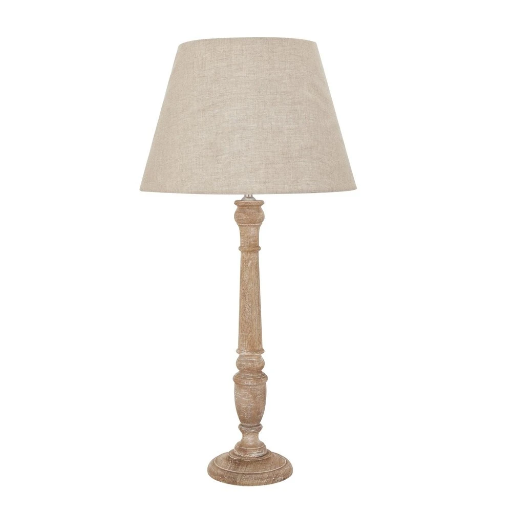 This is the Delaney Natural Wash Spindle Lamp With Linen Shade. A hard wood lamp, individually hand-turned to a high standard by skilled artisans. Made from aged acacia, with visible wood grain, this premium quality lamp, complete with linen shade will be a stand out statement piece wherever it’s used.