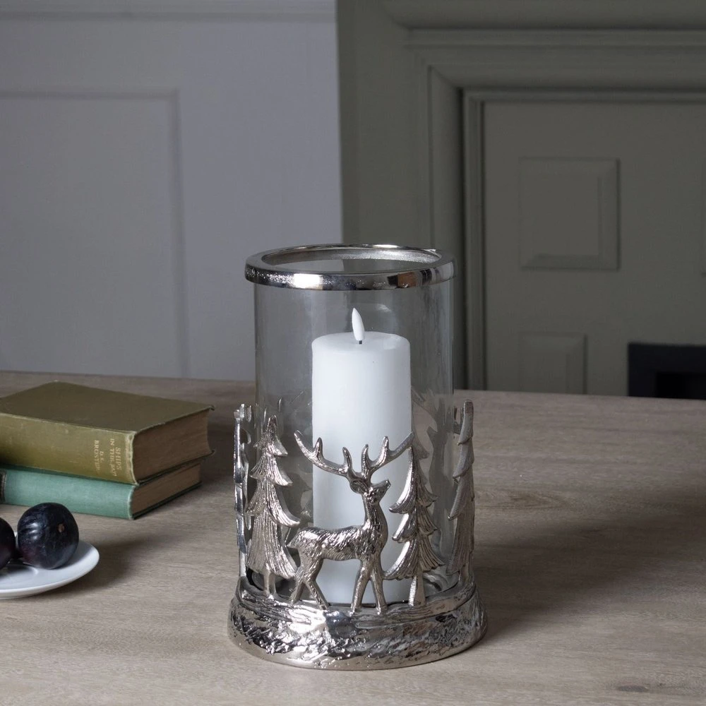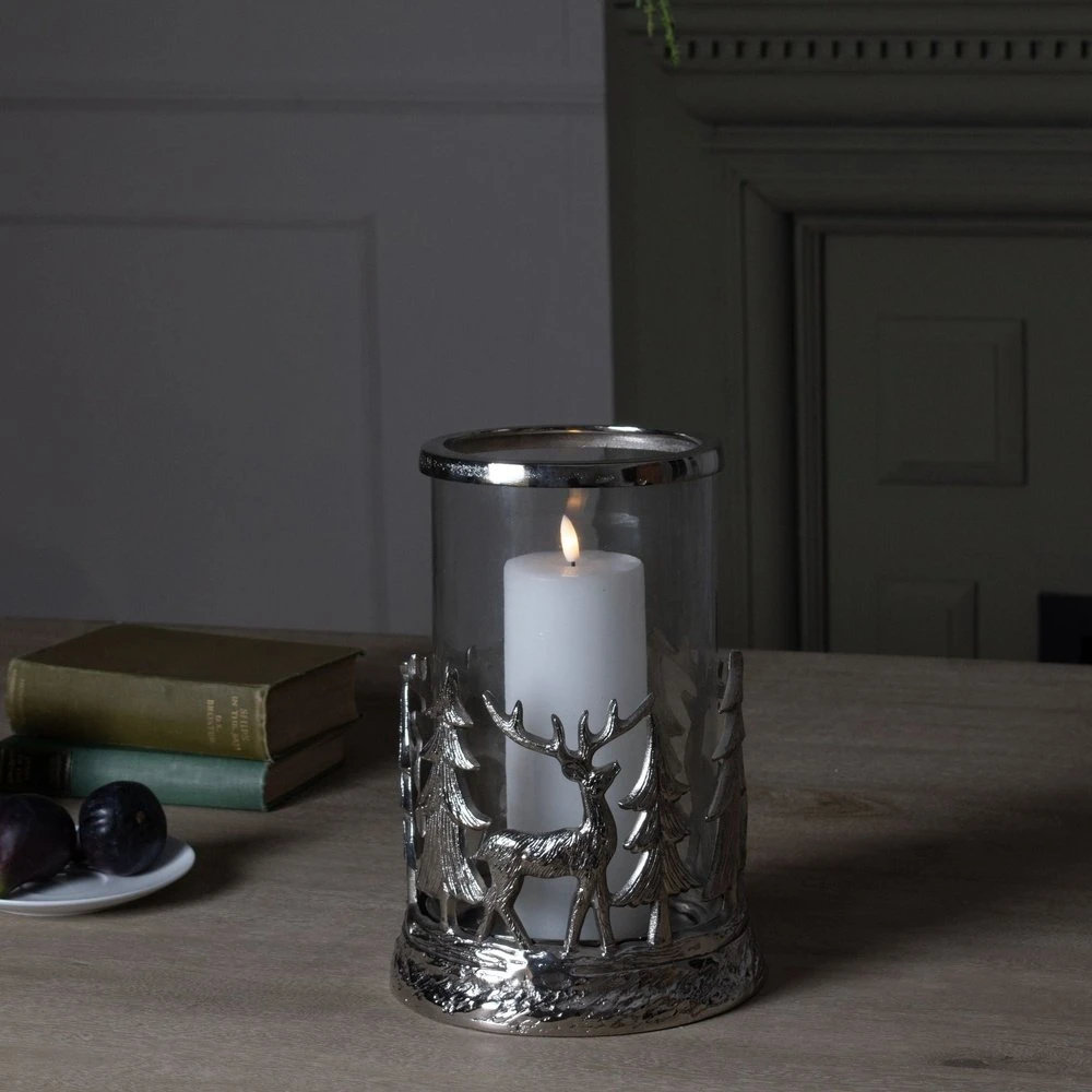 Experience the serenity of a woodland retreat with our Silver Stag Scene Hurricane Lantern. This lantern boasts a picturesque scene of silver stag silhouettes against a backdrop of softly diffused candlelight. Perfect for adding a touch of rustic elegance to your home, this lantern is an ideal choice for nature enthusiasts and those who appreciate artistry in design. Whether you’re hosting a special event or simply want to create a tranquil atmosphere, the Silver Stag Scene Hurricane Lantern is a beautiful and captivating choice.