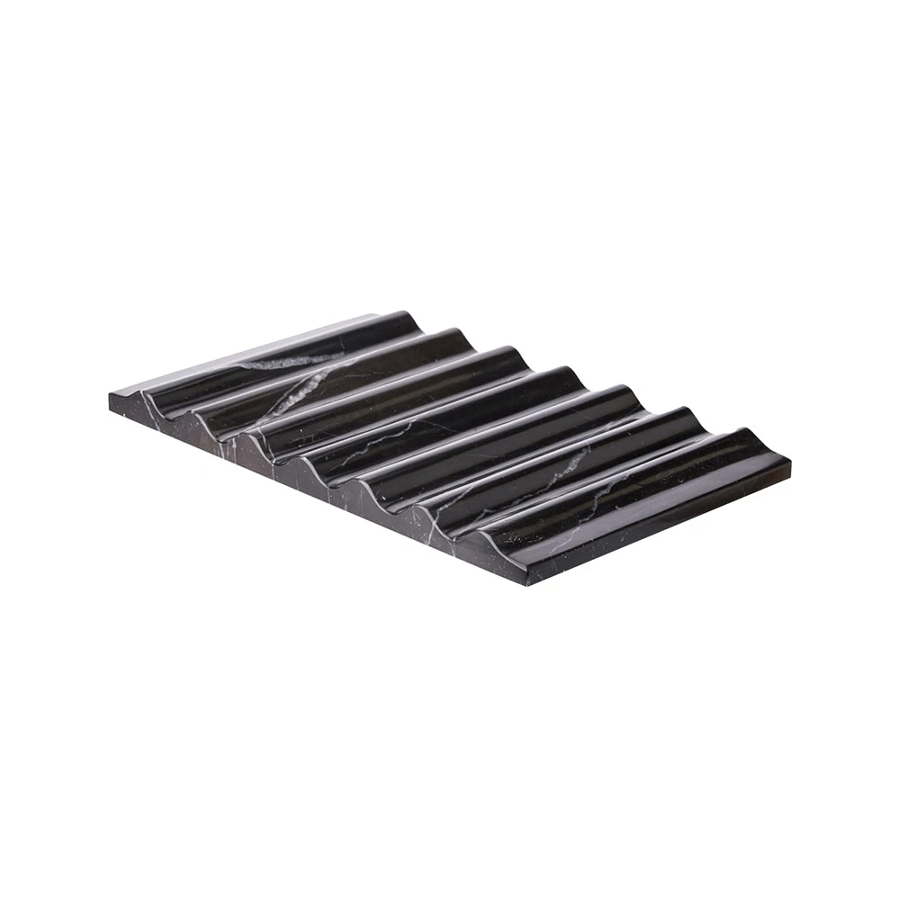 A captivating fusion of elegance and modern design, the exquisite Artium tray is crafted from luxurious black marble, meticulously chosen for its timeless sophistication. The richness of the deep black surface is accentuated by the presence of striking white veins seamlessly running through the marble, creating a visually stunning contrast that elevates any setting.The unique shape of the Artium Marble Tray adds a dynamic and modern flair to its design. With smooth, undulating curves, this tray becomes not just a functional piece but a work of art that captivates the eye. The visible white lines gracefully follow the contours, enhancing the overall aesthetic appeal and providing a sense of movement and fluidity.Each Artium Marble Tray is a one-of-a-kind masterpiece, as the natural variations in the marble ensure that no two trays are identical. This bespoke quality adds a touch of exclusivity to your space, making it a statement piece that reflects your discerning taste.Versatile and practical, the Artium Marble Tray is perfect for displaying cherished objects, or organising everyday essentials. Whether it graces your dining table, coffee table, or vanity, the tray’s distinctive design and high-quality craftsmanship make it a conversation starter in any room.Transform your living space with Artium, where classic meets modern, and functionality meets artistry. Immerse yourself in the timeless allure of black marble, brought to life with the organic beauty of visible white lines and the modern silhouette. Elevate your surroundings with this unparalleled piece that seamlessly merges form and function. Features:Black MarbleAlso available in beige marble.