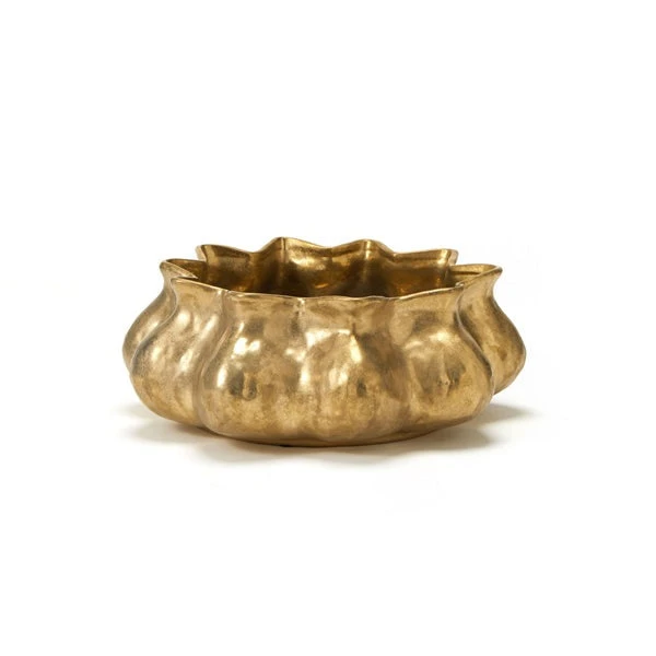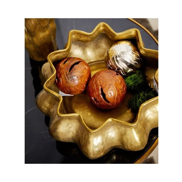 Finished in an antiqued gold-bronze hue, the curved shapes both reflect the light and cast shadows in unique ways.