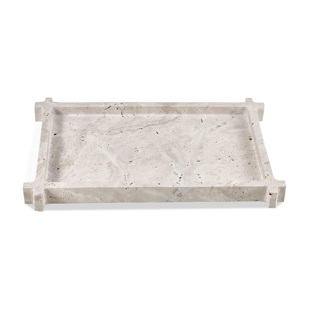 The exquisite Roche Tray is a true embodiment of timeless beauty that effortlessly elevates any setting. This opulent marble tray not only enhances your everyday accessories but also infuses your space with a touch of refined elegance. Its captivating design showcases a symphony of neutral hues, meticulously crafted to create a mesmerising display of crossed corners. The Roche Tray’s minimalist aesthetic exudes sophistication, making it a versatile addition to any interior space Roche’s neutral beige color palette reminiscent of elegant travertine, is a captivating piece ideal for artfully arranging your candles and accessories, enhancing the beauty of your interior decor. As a natural material, each tray boasts its unique character, with variations in colour and texture that ensure a one-of-a-kind masterpiece. Embrace the beauty of marble within your setting, knowing that no two trays are identical, allowing you to indulge in a truly personalised experience. Features: Beige marble tray. As marble is a natural material, colour and texture may differ on every piece.