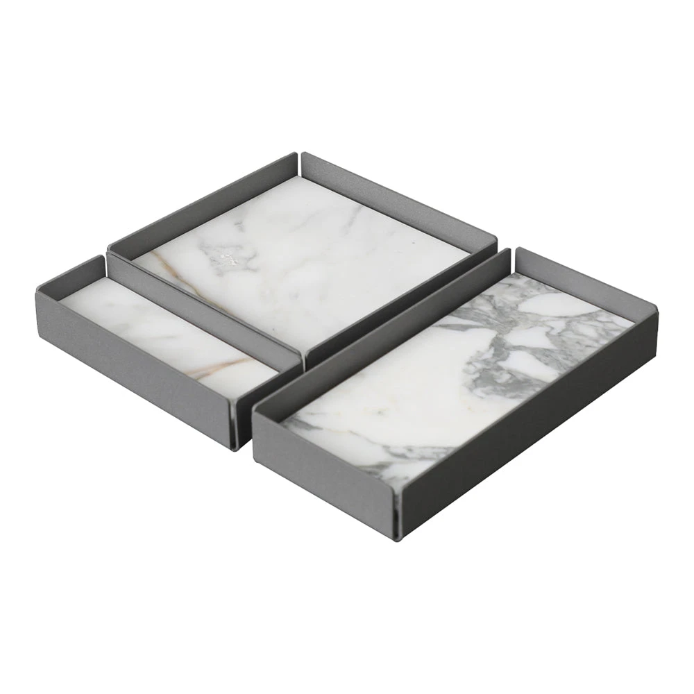 The timeless grey and white colour palette means it fits easily into many different home decors. This rectangular tray is 18cm wide, 10cm deep and 3.5cm tall and is also available in two other sizes.