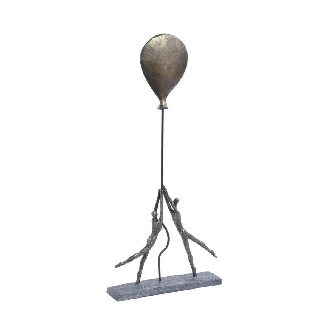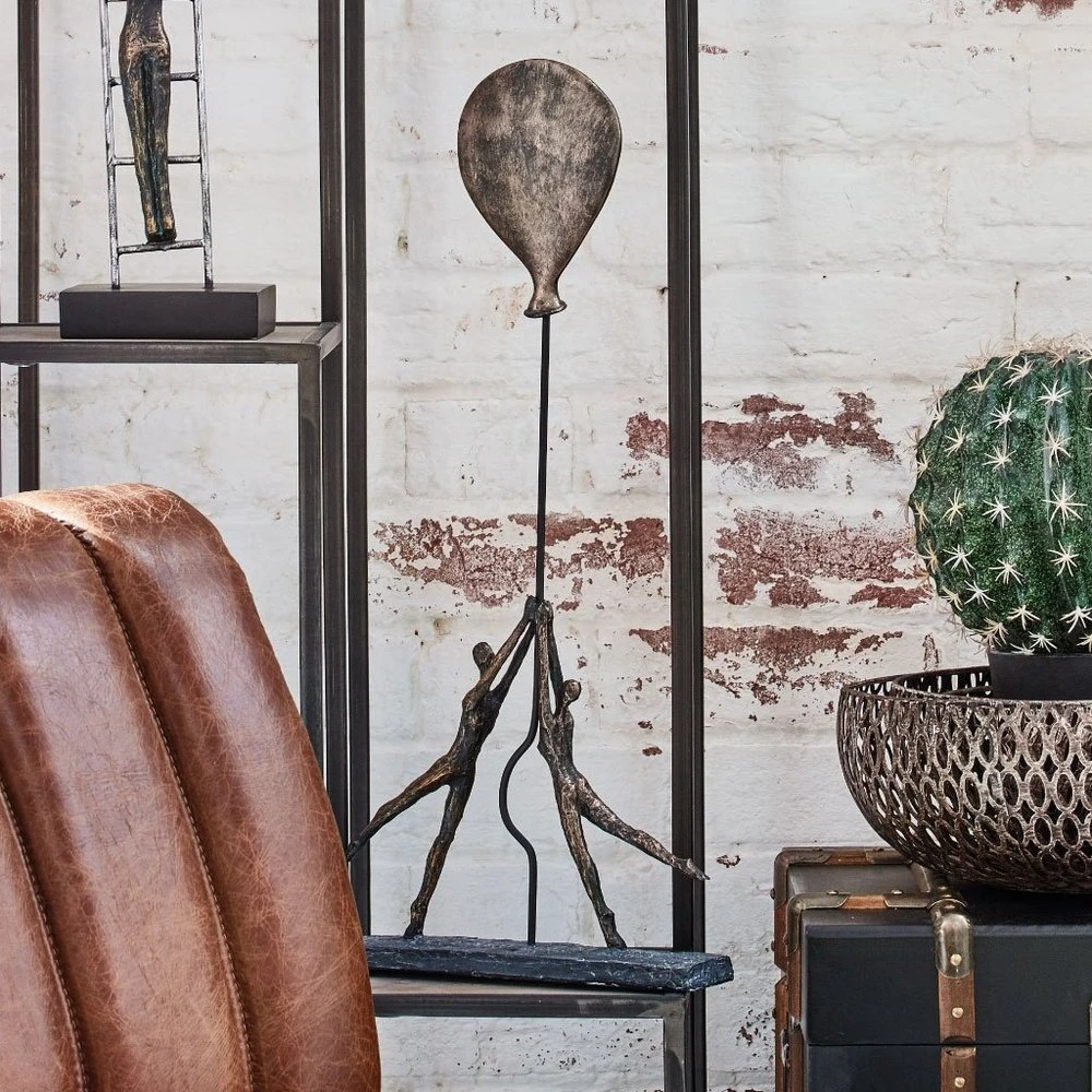 A touching scene made with skill and attention to detail that provides a striking feature for your space, whether it’s a lounge, bedroom or even hallway. You can almost see the balloon drift upwards as the beautifully rendered couple grasp it to pull it close. The character and charm of this contemporary antique bronzed resin sculpture capture the movement of the couple as the bronze balloon rises up. An eye-catching focal point to add whimsy to a shelf or surface and draw the viewer into the feel of the room, this sculpture’s warm antiqued bronze colour melds with many styles and colour choices.
