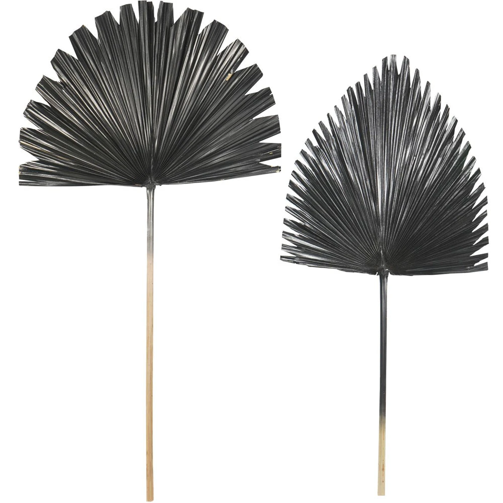For those who enjoy natural decor pieces, these Natural Arrowhead Palm Leaves in a Black finish are perfect for you. Textured leaves with long stems make these Palm Leaves ideal for use in your interior space, either standing alone in a vase, or paired with other dried flowers. Due to being a natural product, slight variations in colour, shape and size will occur. They stand 85cm tall and measure 40cm wide.