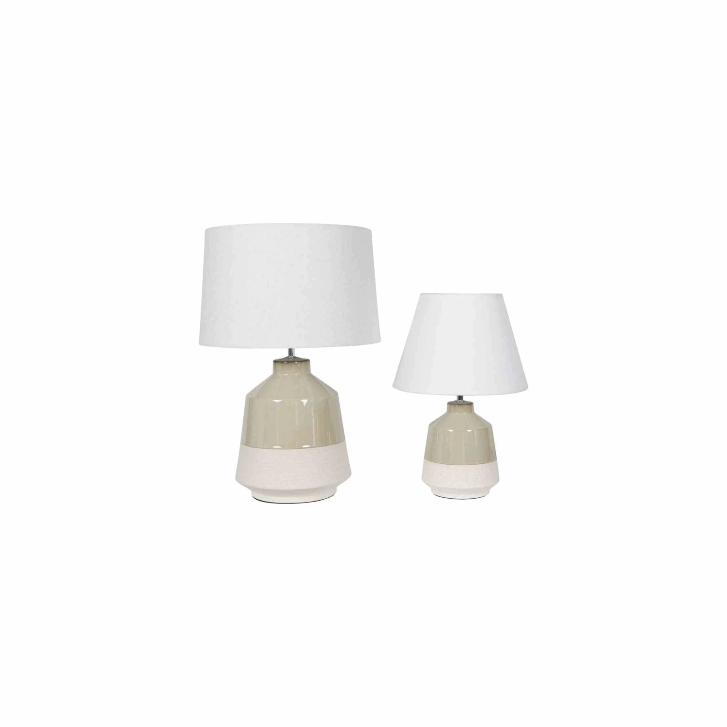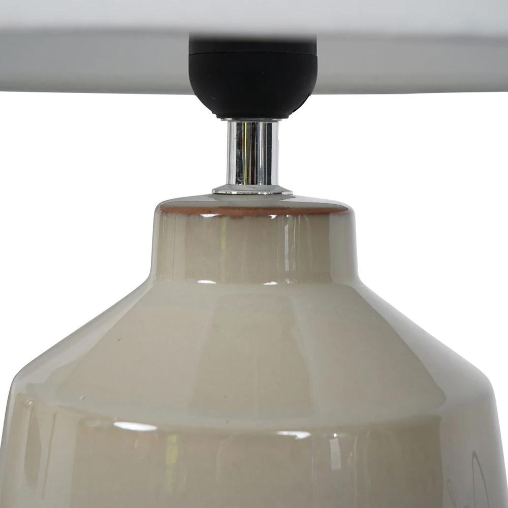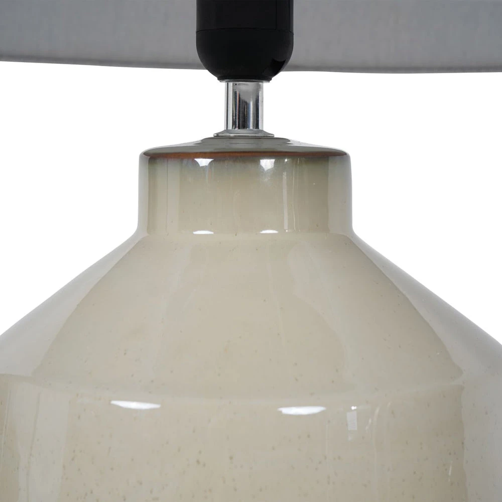 Our Canterbury Table Lamp is made in ceramic, with a rustic stone coloured bisque fired base, topped with a beautiful creamy soft sage green glaze, on the top 2/3 of the lamp base, for a contrast look. The lamp comes complete with a Coolie shade in an ivory colour. It benefits from a 120cm black cable with an inline rocker switch.