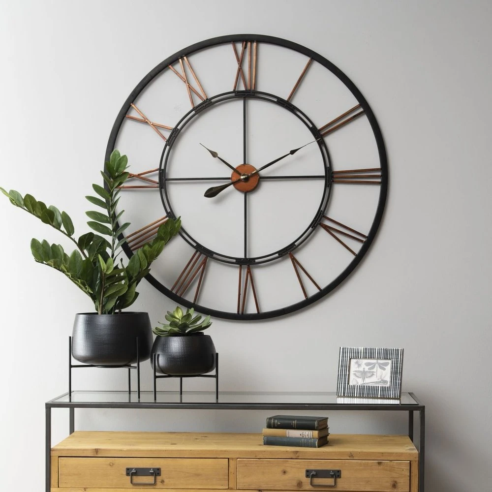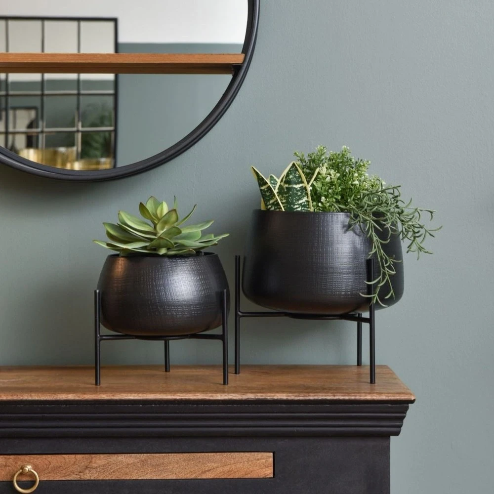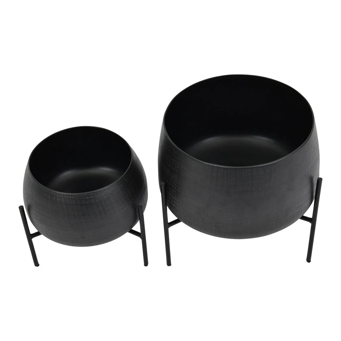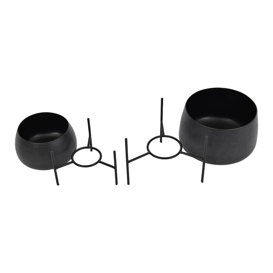 Bring your indoor plants to life in this contemporary planter set. Two beautiful black antique pots stand on metallic legs for timeless style.