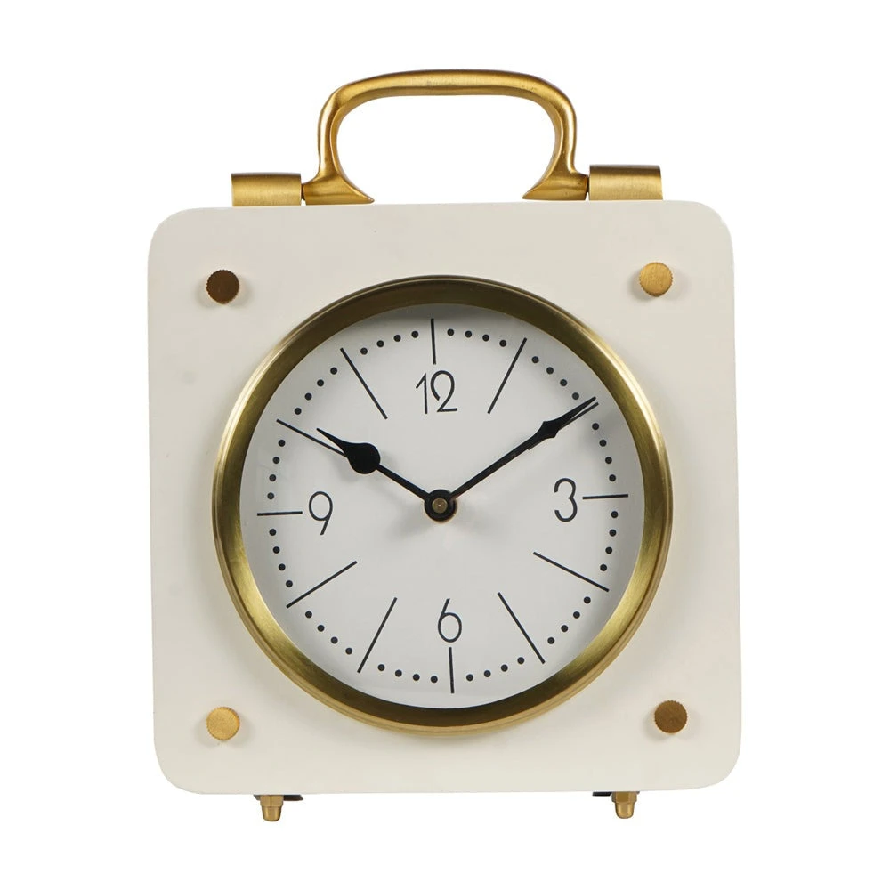 Add a touch of elegance to your living room with the Libra Interiors Kimberley Cream & Gold Mantel Clock. This mantel clock features a timeless design with a cream-colored face and gold accents, adding a classic and sophisticated look to any mantelpiece. Crafted from MDF, aluminium, stainless steel, and brass, it is as durable as it is stylish. Whether placed on a fireplace mantel or shelf, it adds a touch of luxury to your living space while keeping you punctual. Elevate your home decor with the timeless beauty of the Kimberley Mantel Clock from Libra Interiors.