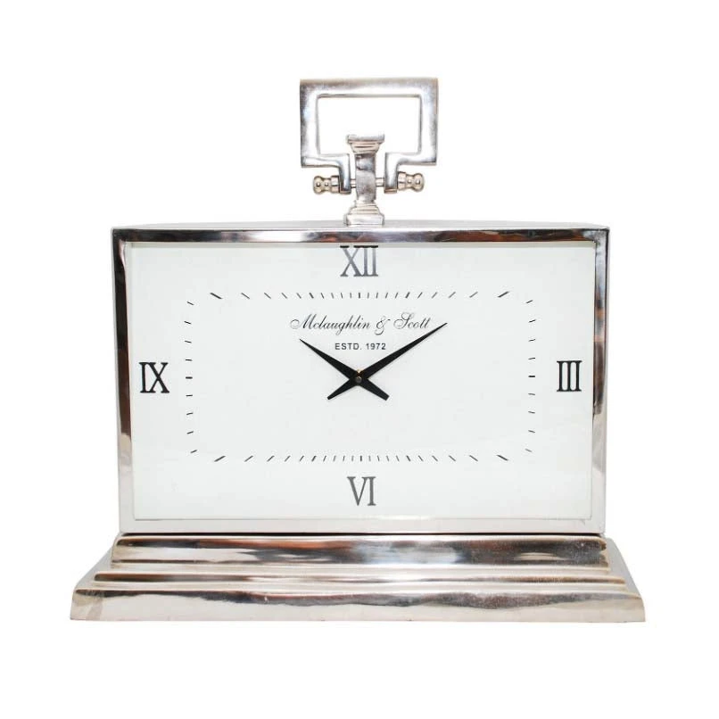 A beautifully refined design, the Latham Mantel Clock has a classic rectangular form and stepped plinth base. With a large face displaying stylish Roman numerals, this nickel finish clock makes for the ideal gift or finishing touch to any room.