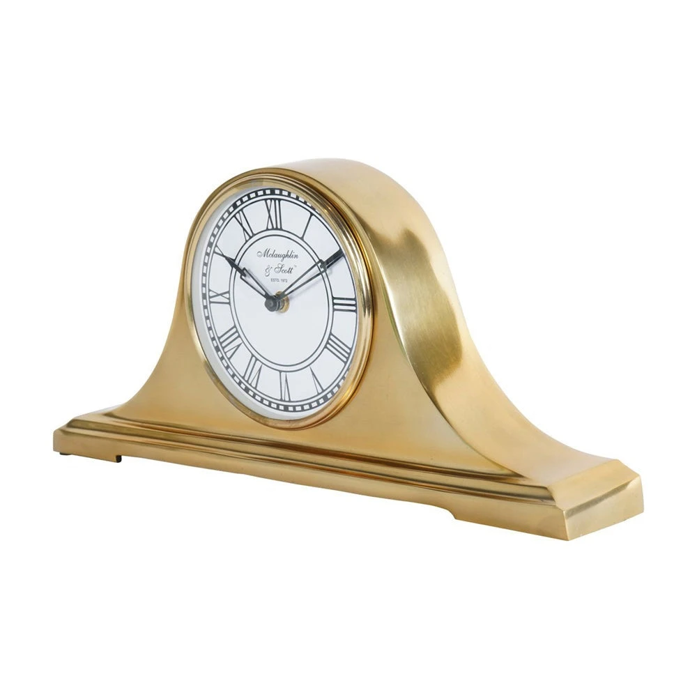 With more than a nod to Art Deco design, our Retro Carriage Mantle Clock has a classic, curved silhouette. Compact in size with timeless appeal, it is an ideal time piece for any living space. Powered by a very quiet Quartz Mechanism, requiring a single AA Battery, not included. Available in both nickel and brass finishes.