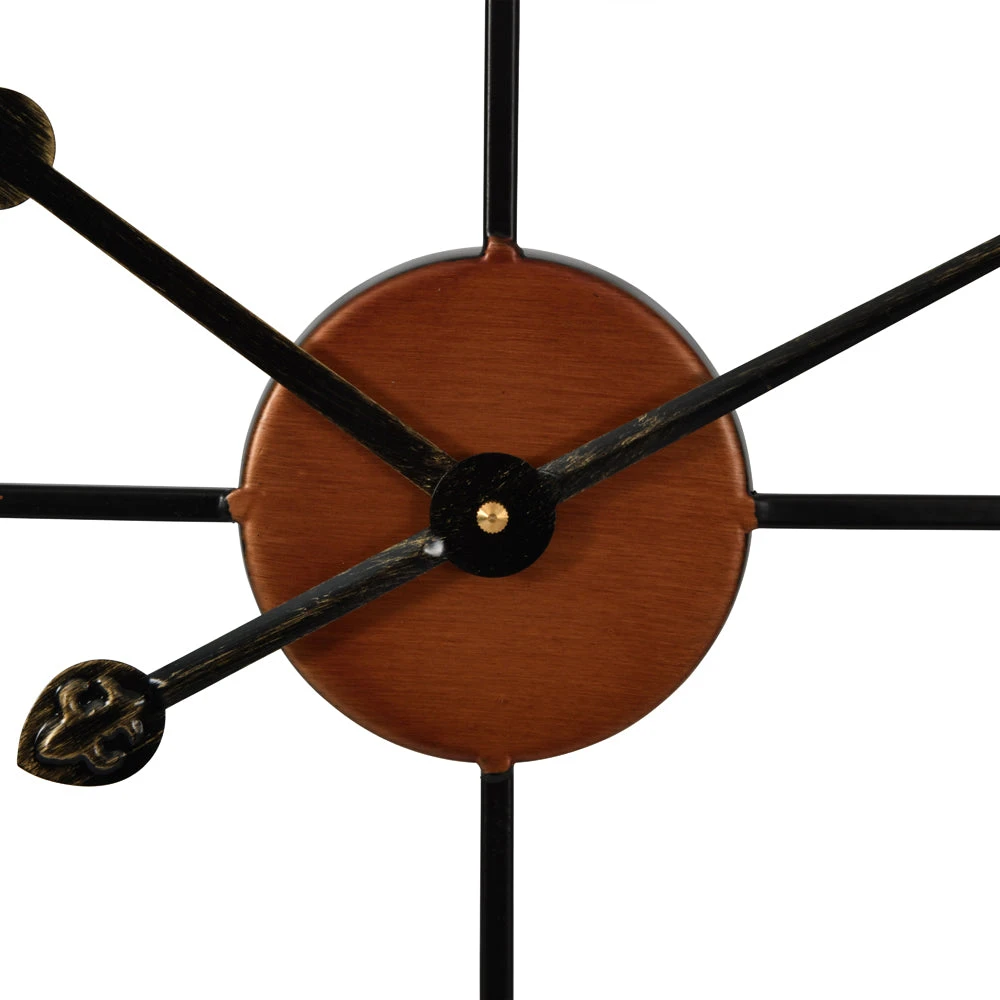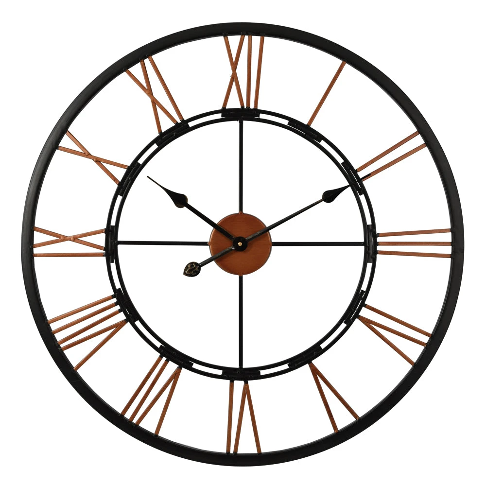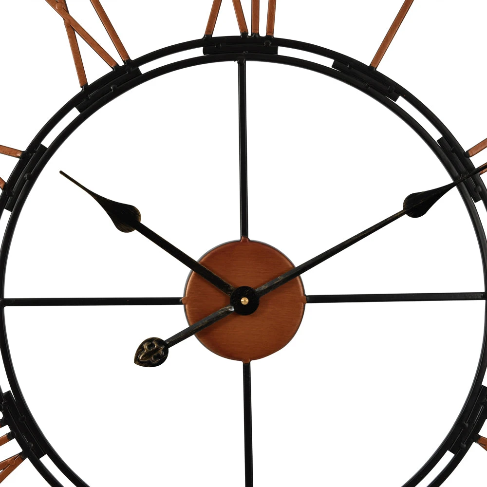 The hand crafted black, iron framework adds a modern and stylish touch, whereas the copper coated roman numeral detailing adds a vintage glamour; this is a striking feature that allows this timekeeper to stand out from the crowd.