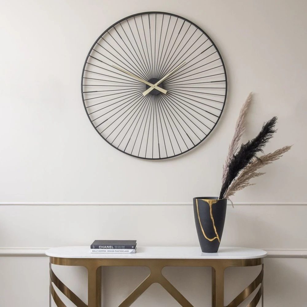The Libra Spoke Wall Clock features a sleek and modern design that is sure to impress. The black metal spokes radiate out from the center, creating a stunning visual effect. The clock’s face is minimalistic, with simple black hands and easy-to-read numerals, adding to the clock’s sophisticated look.