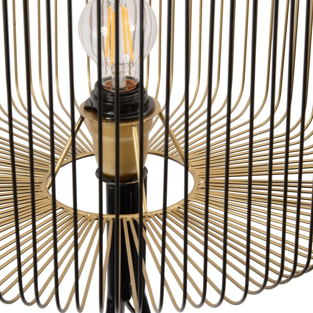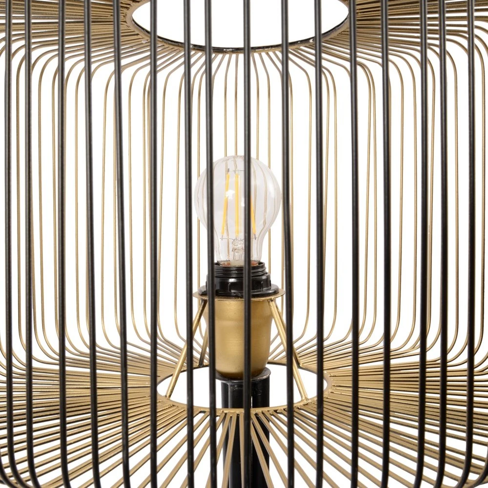 Cool and contemporary, this striking floor lamp features a tripod base and a wire caged frame which encases a filament bulb. Gold detailing on the inside of the cage and light fitting contrast beautifully with the black frame to create a modern light that will bring a touch of style to any space.