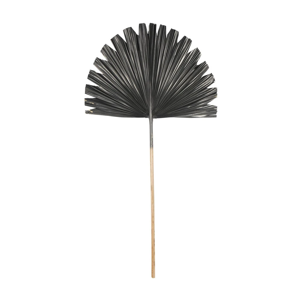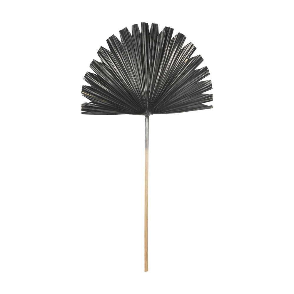 For those who enjoy natural decor pieces, these Natural Wide Fan Palm Leaves in a Black finish are perfect for you. Textured leaves with long stems make these Palm Leaves ideal for use in your interior space, either standing alone in a vase, or paired with other dried flowers. Due to being a natural product, slight variations in colour, shape and size will occur. They stand 96cm tall and measure 50cm wide.