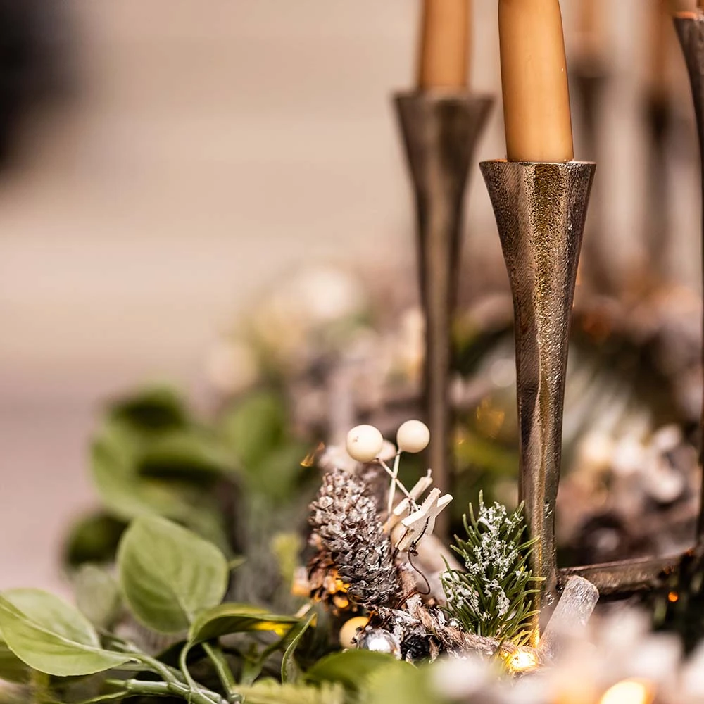 This holder can take five candles and has a unique crossover design that creates an artistic look whilst upholding its practicality. The antique silver colour scheme emphasises the traditional look of the candle holder, making it feel like it belongs in an 18th-century castle whilst still maintaining a contemporary nature.