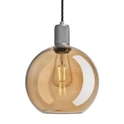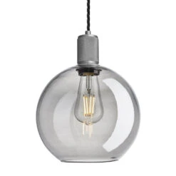 Industville Knurled Tinted Glass Globe Pendant Light In Smoke Grey With Pewter Holder