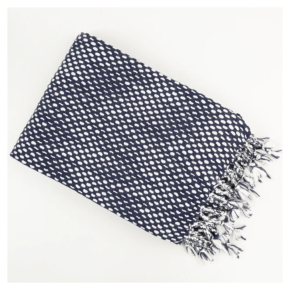 Indulge in refined elegance with the Malini Raindrops Throw in Navy. Measuring 130 x 180 cm, this throw exudes sophistication with its intricate raindrop pattern in ivory and navy hues, making it a perfect addition to elevate the ambiance and style of any room.