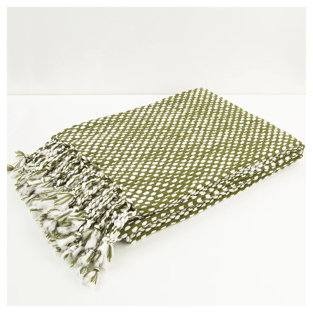 Invite the beauty of nature indoors with the Malini Raindrops Throw in Olive. Adorned with a captivating raindrop design in a harmonious blend of ivory and olive, this 130 x 180 cm throw adds a touch of warmth and charm to your living space, ensuring both coziness and elegance.