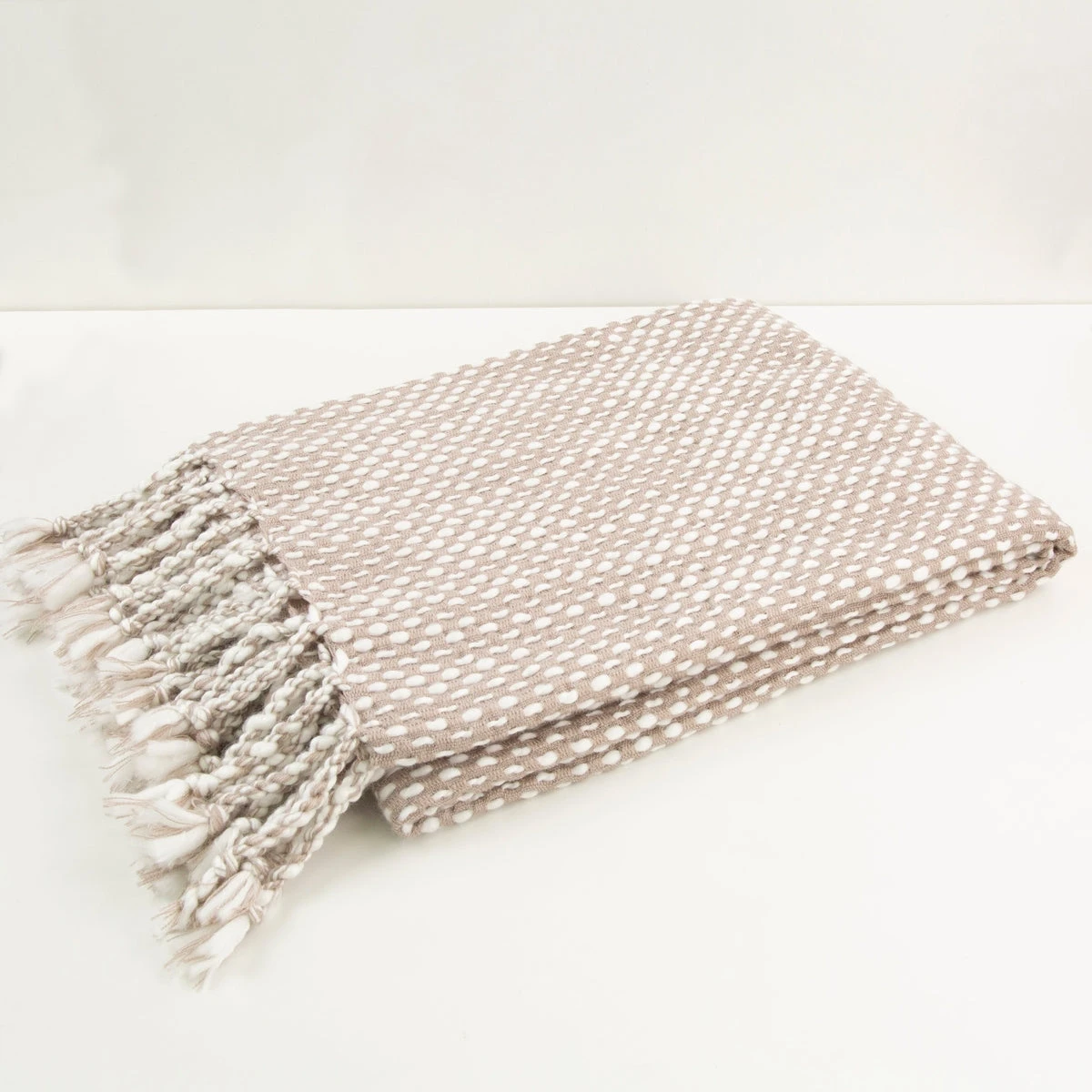 Introduce understated luxury to your home decor with the Malini Raindrops Throw in Taupe. Measuring 130 x 180 cm, this throw showcases a refined raindrop pattern in an elegant ivory and taupe palette, offering both warmth and sophistication to your interior space.