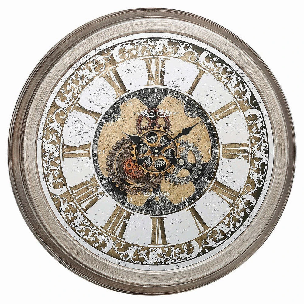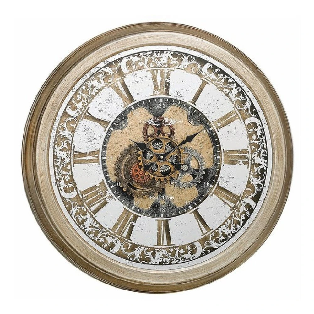 So often the intricately fascinating mechanism the makes up traditional clockwork pieces is hidden away and remains unseen. The Farrah clock brings the art of these beautiful workings to the fore and displays them in the centre of this appealing timepiece, with its intricately illustrated Roman numeral number system and a delicate scrolling floral border.