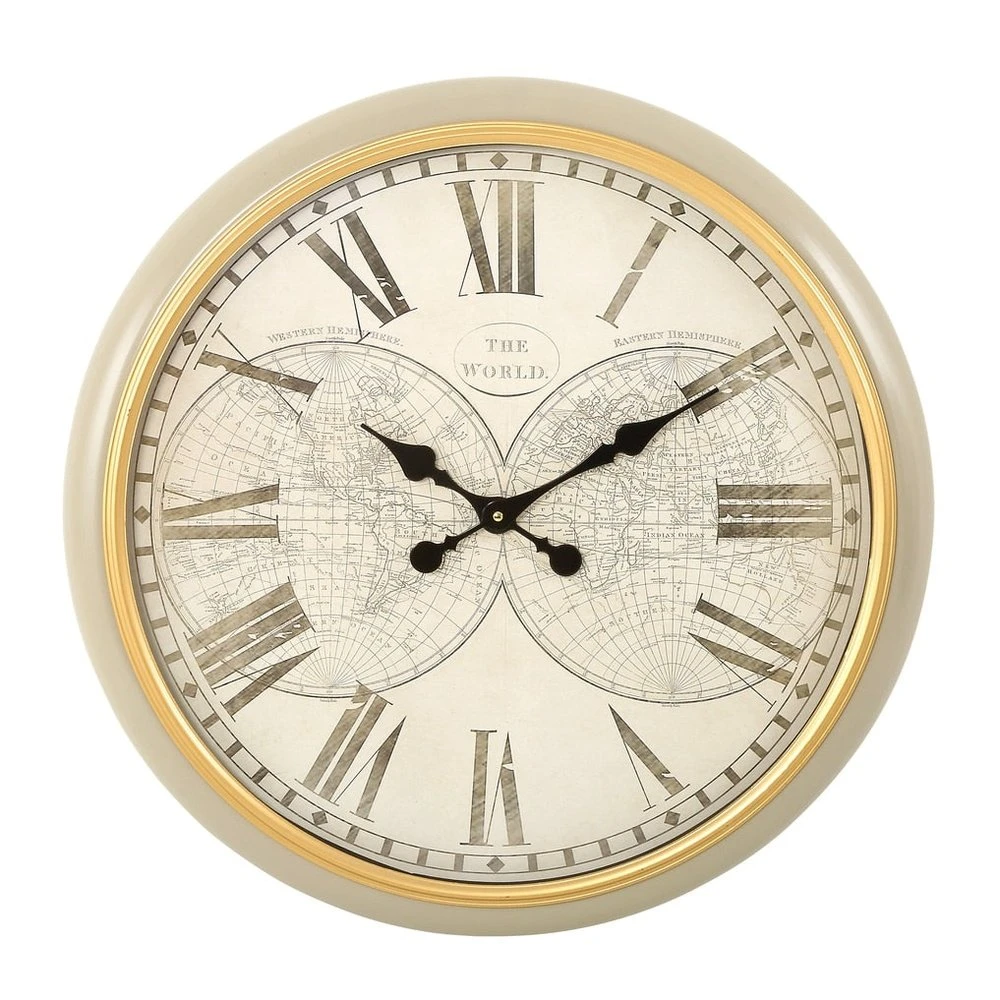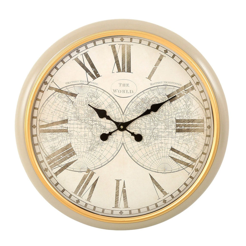 A clock for those who love to travel, beautiful map details on this clock finished, an ornate style finished with roman numerals