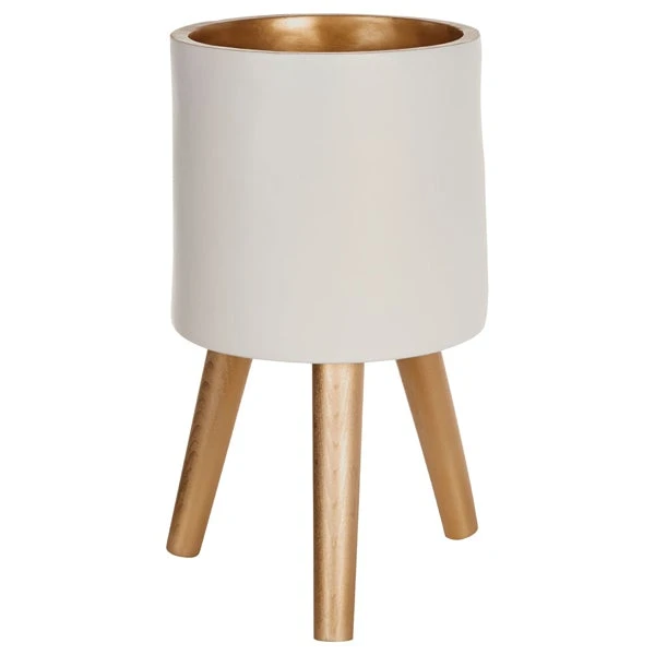 The Daniel planter stands on a trio of renewable beechwood legs, with a gold finish that complements its inner. Perfect for a potted plant, use it to add a pop of greenery to interiors or the garden.