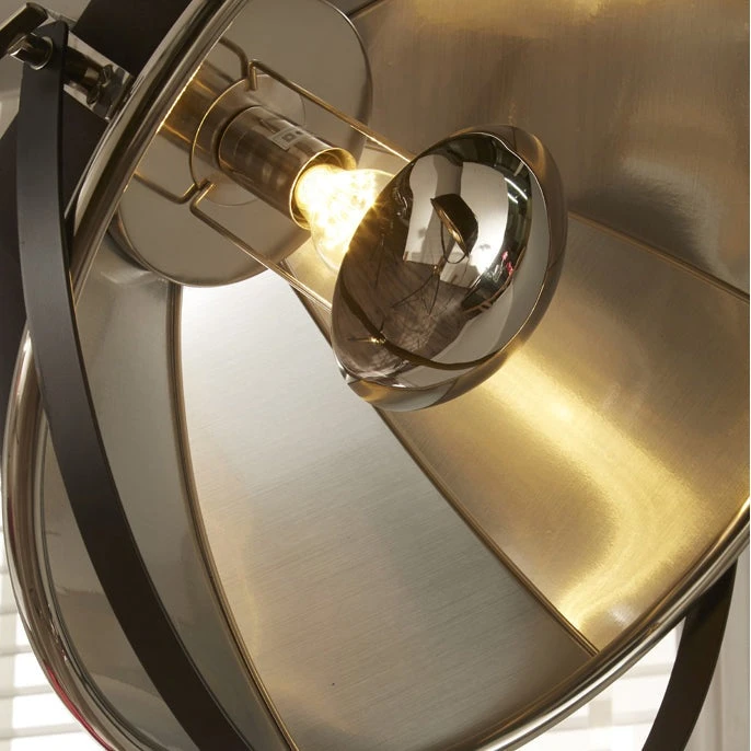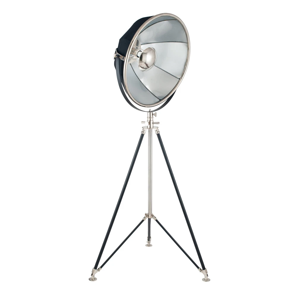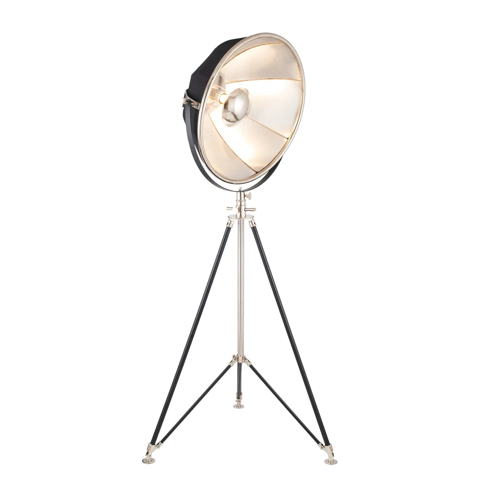 Add a little glamour to the room with this striking cinematic style film light. Finished in a beautiful black fabric outer and contrasting silver inner the light reflects beautifully and then is softened by the silver finish dome diffuser. A striking addition to any home. Pair it with the matching pendant. Also available as a floor lamp and pendant in black with gold inner.