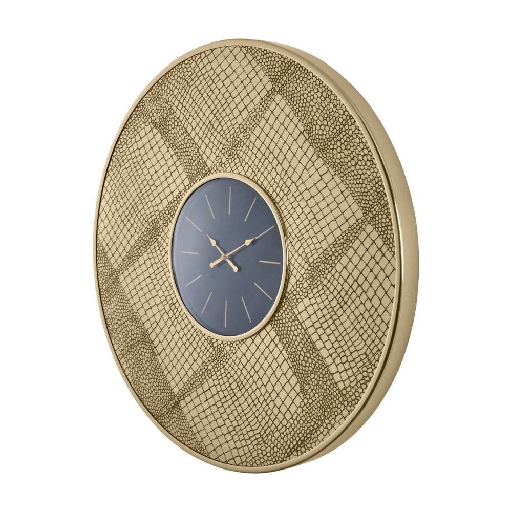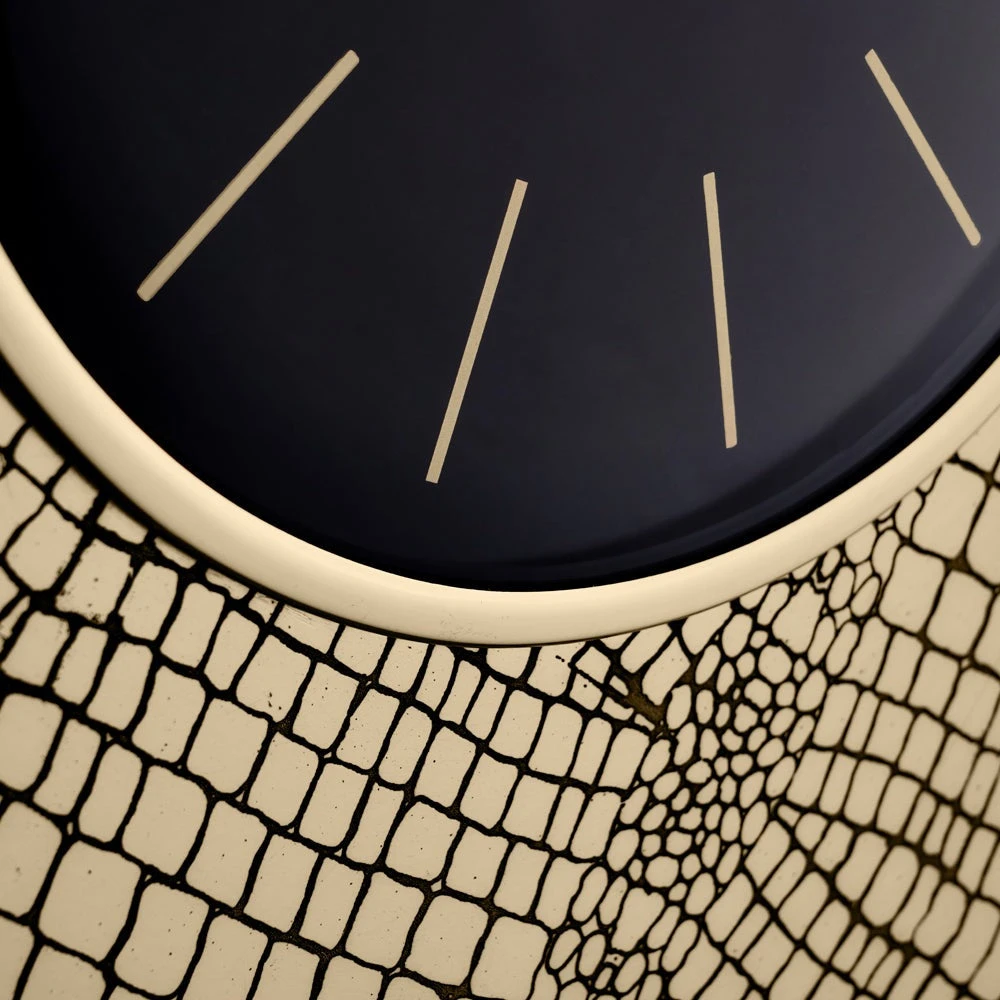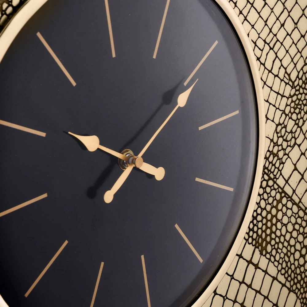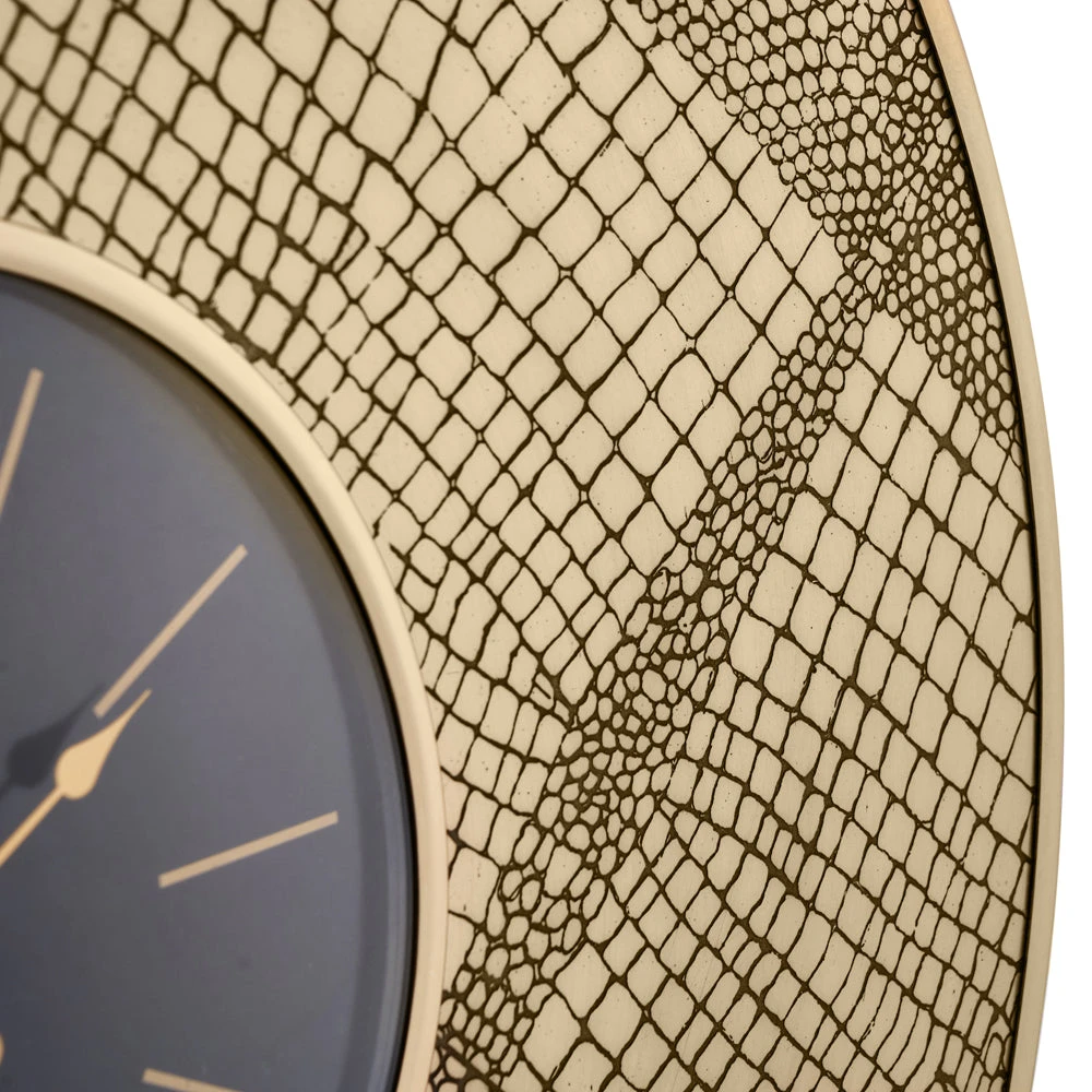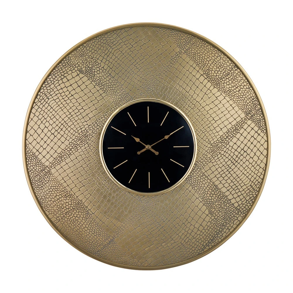 This antique brass wall clock with croc print embossing adds a focal point to any room. The contrasting black clockface with brass detailing means not only is this piece uber stylish, but also practical and very easy to read.