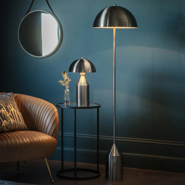 Finished in brushed nickel, this floor lamp has strong, clean lines and a contemporary vibe; what’s more, a brushed nickel half downlist dome shade completes the vibrant and edgy look. The Olivia’s Nova floor lamp comes with an inline foot switch for convenience, confirming that this is a superior home lighting product.