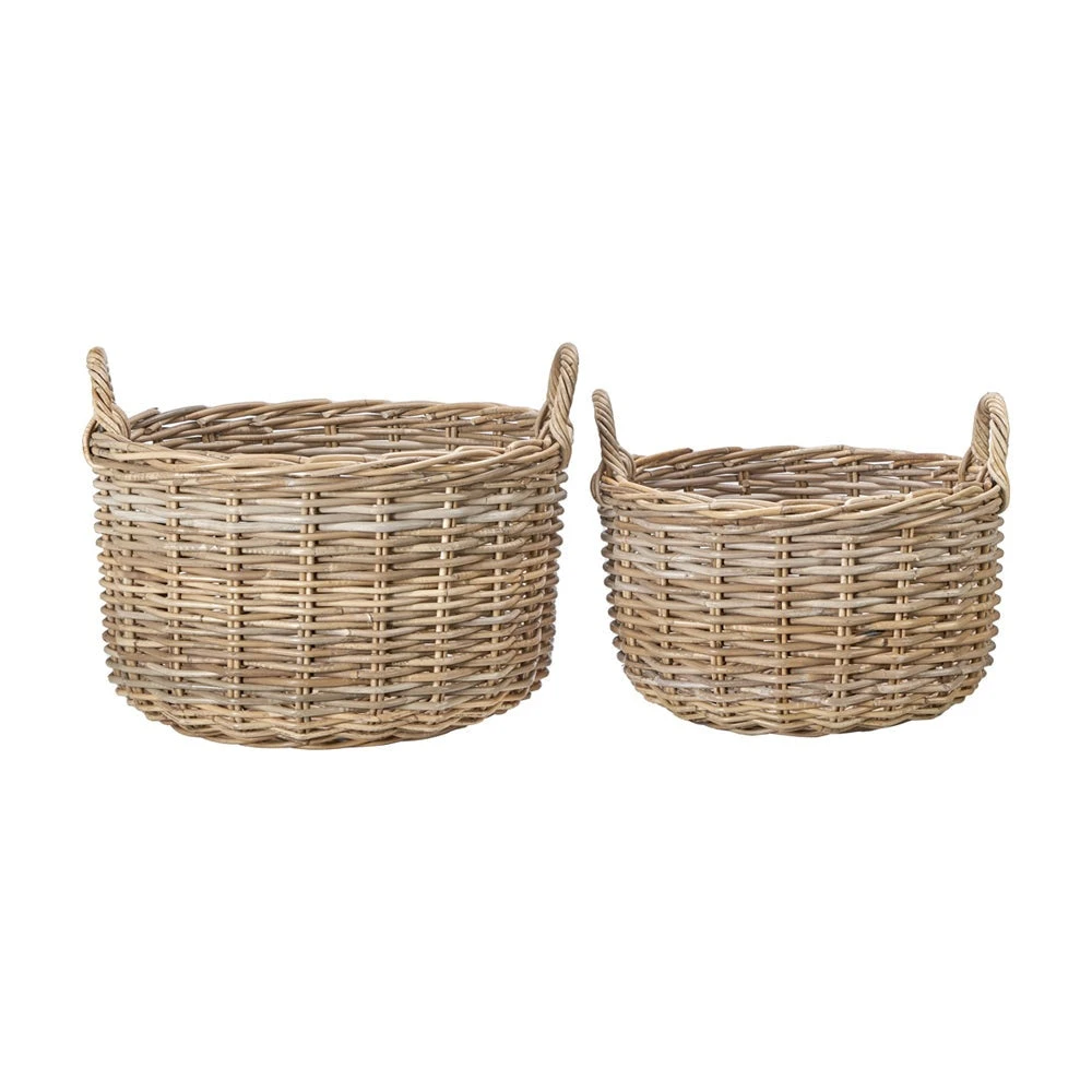 This set of 2 Grey Kobi round baskets are perfect for storing logs and other household items. The well-proportioned baskets are beautifully crafted with handles.