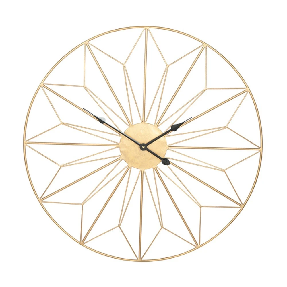 Make a statement on your wall with this geometric designed large metal wall clock finished in antique gold metal.