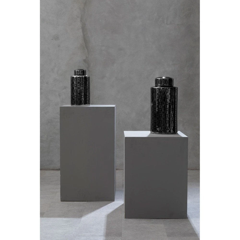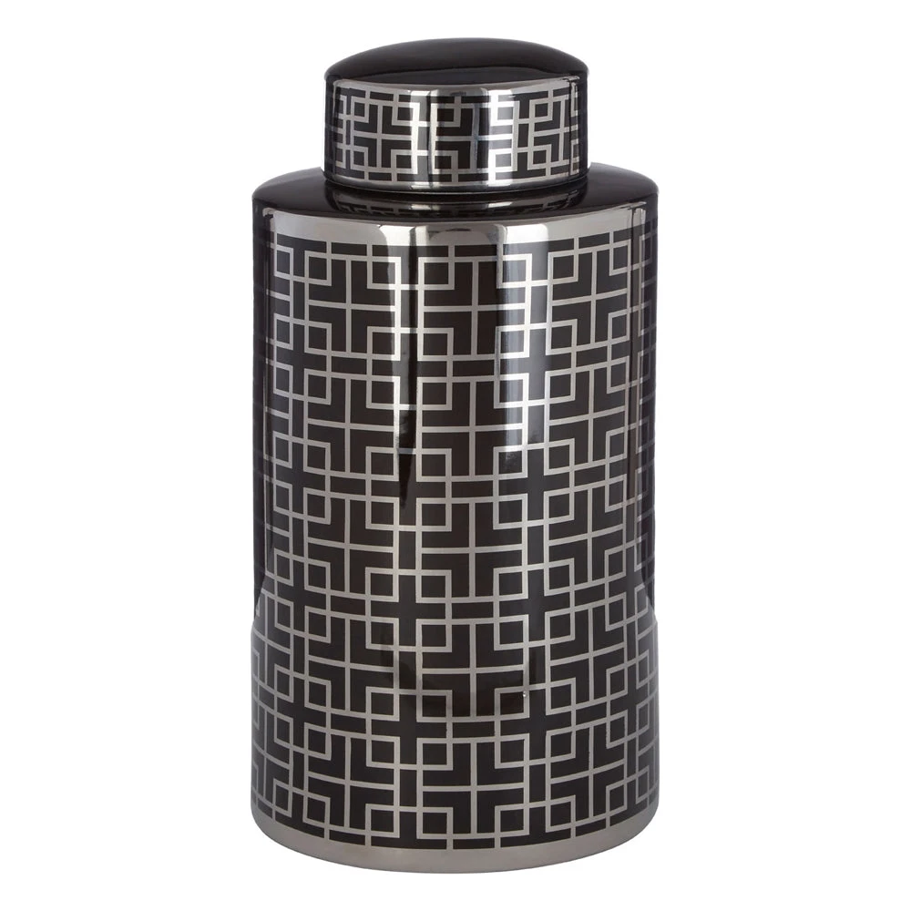 This black Daria ginger jar has a distinct Middle Eastern influence and is reminiscent of Art Deco styles that took their inspiration from the same source.