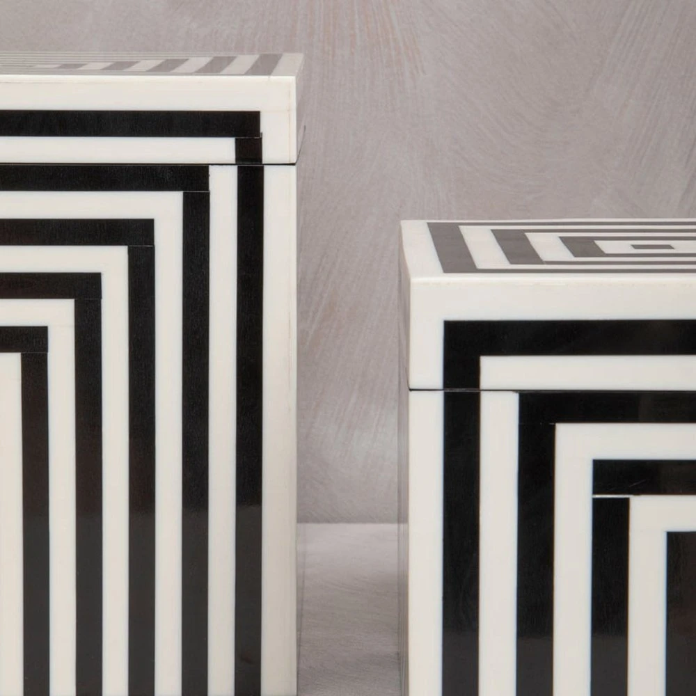 Exhibiting a striped pattern, this trinket box is made from premium quality MDF and given a coating of resin for optimum protection. This large trinket box is functional yet decorative, and it keeps the ornaments organised and close to hand.