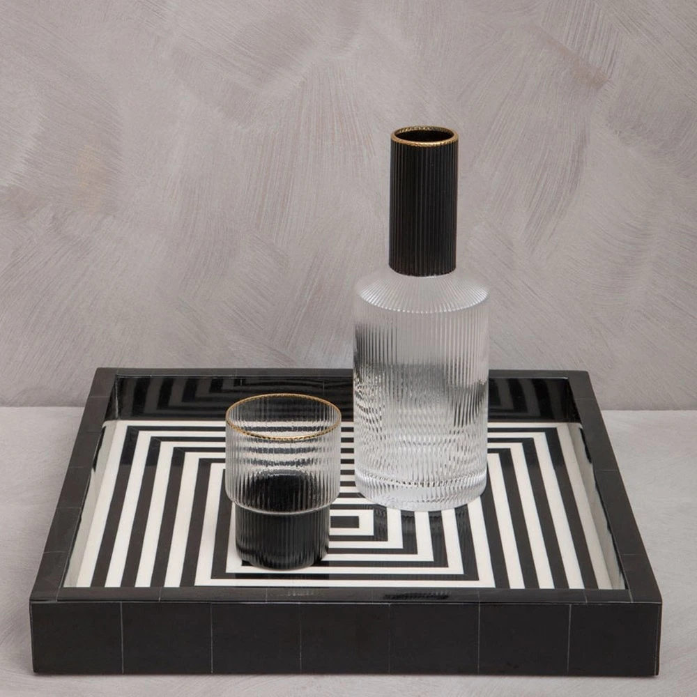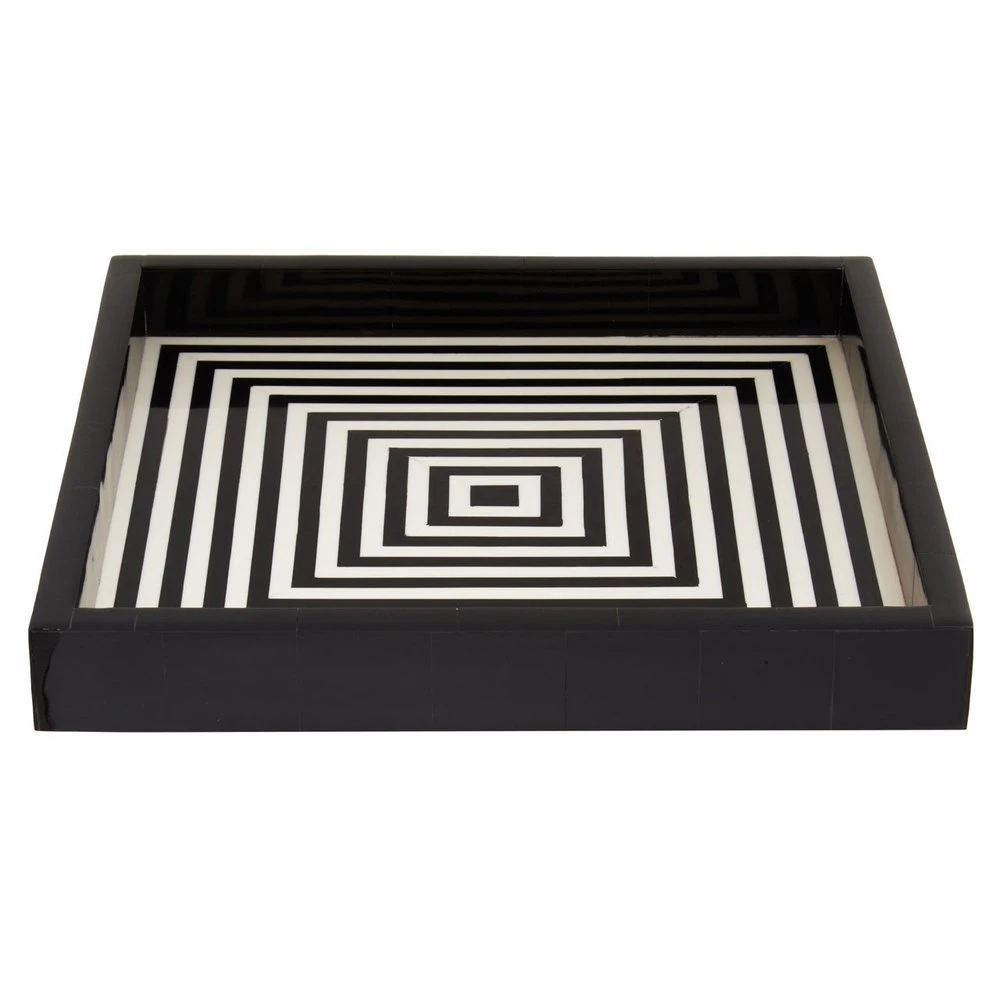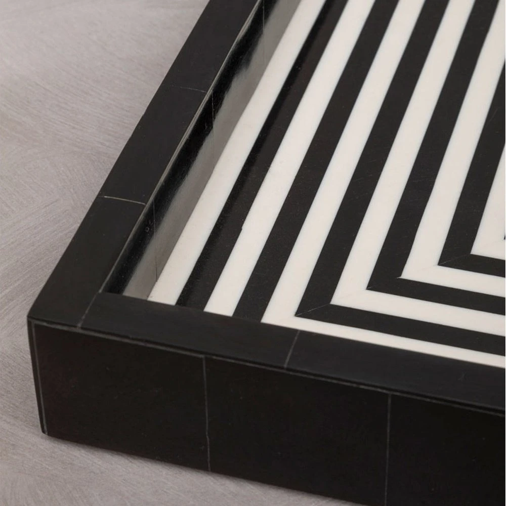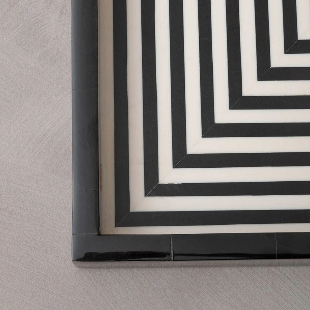 This square-shaped serving tray is handcrafted from premium quality MDF and given a resin finish to enhance its durability. The striped design on the surface creates a 3D effect which makes it a decorative and functional item for serving and showcasing.