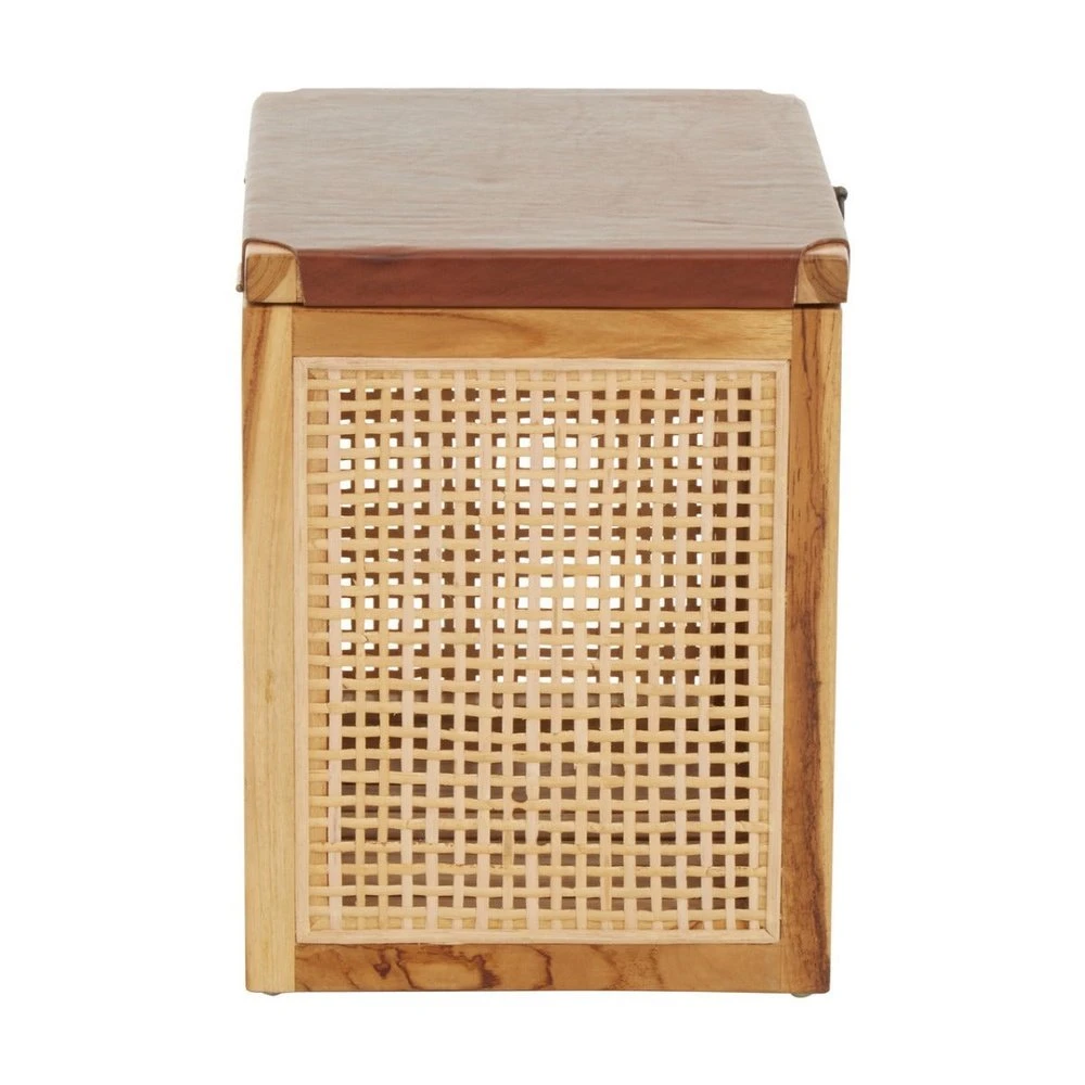 This storage box is expertly handcrafted from solid teak wood and the sides feature intricately handwoven rattan. This versatile storage box is topped with an antique brown leather top and it keeps the area organised and tidy.