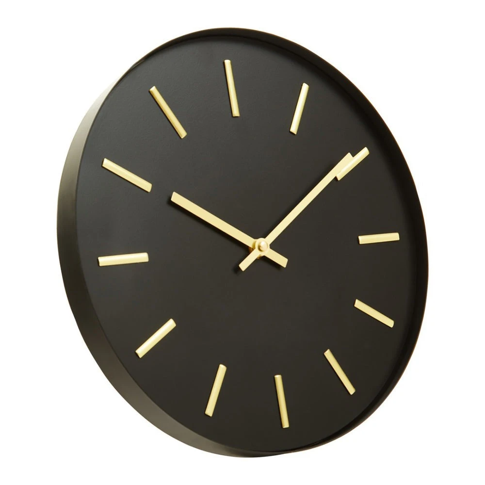 Sleek black metal provides the background for the timepiece, allowing the gold hands and number details to really stand out. Paired with the simplicity of the design, these contrasting colours help to fuse an industrial feel with a hint of glamour. With dimensions of 30cm in diameter and 5cm deep, the eye-catching Vitas metal wall clock will look perfect in your kitchen, study or lounge.