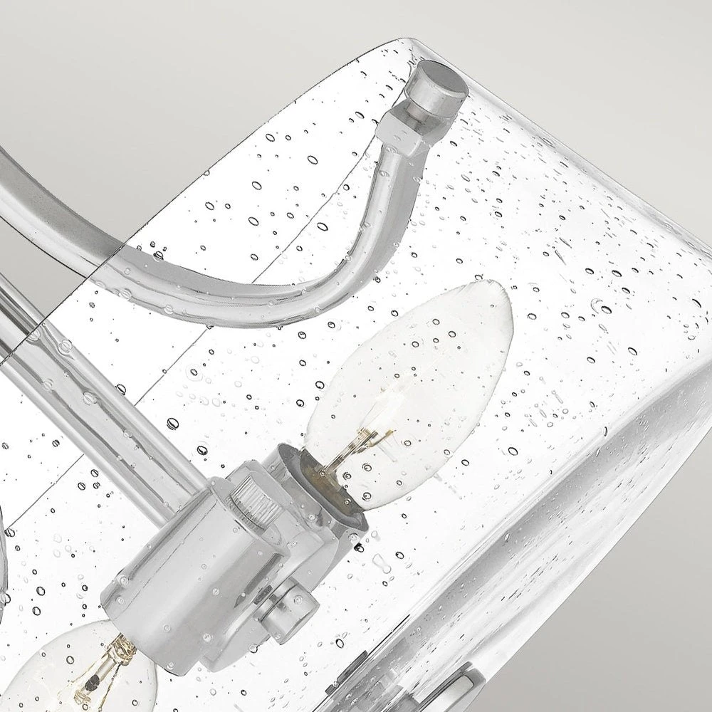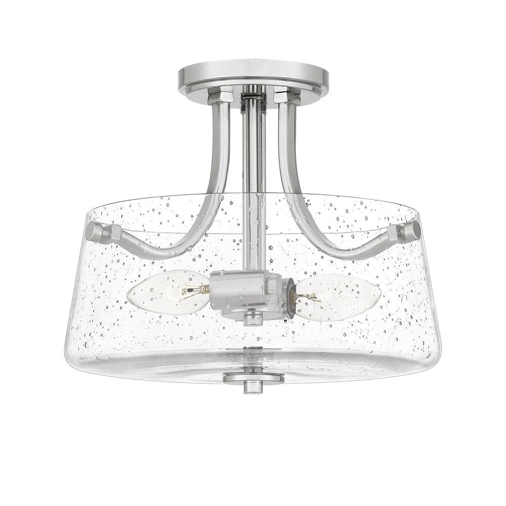 The Hollister semi-flush ceiling light has a subtle seeded glass surround, giving the light a playful environment. Finished in polished nickel.