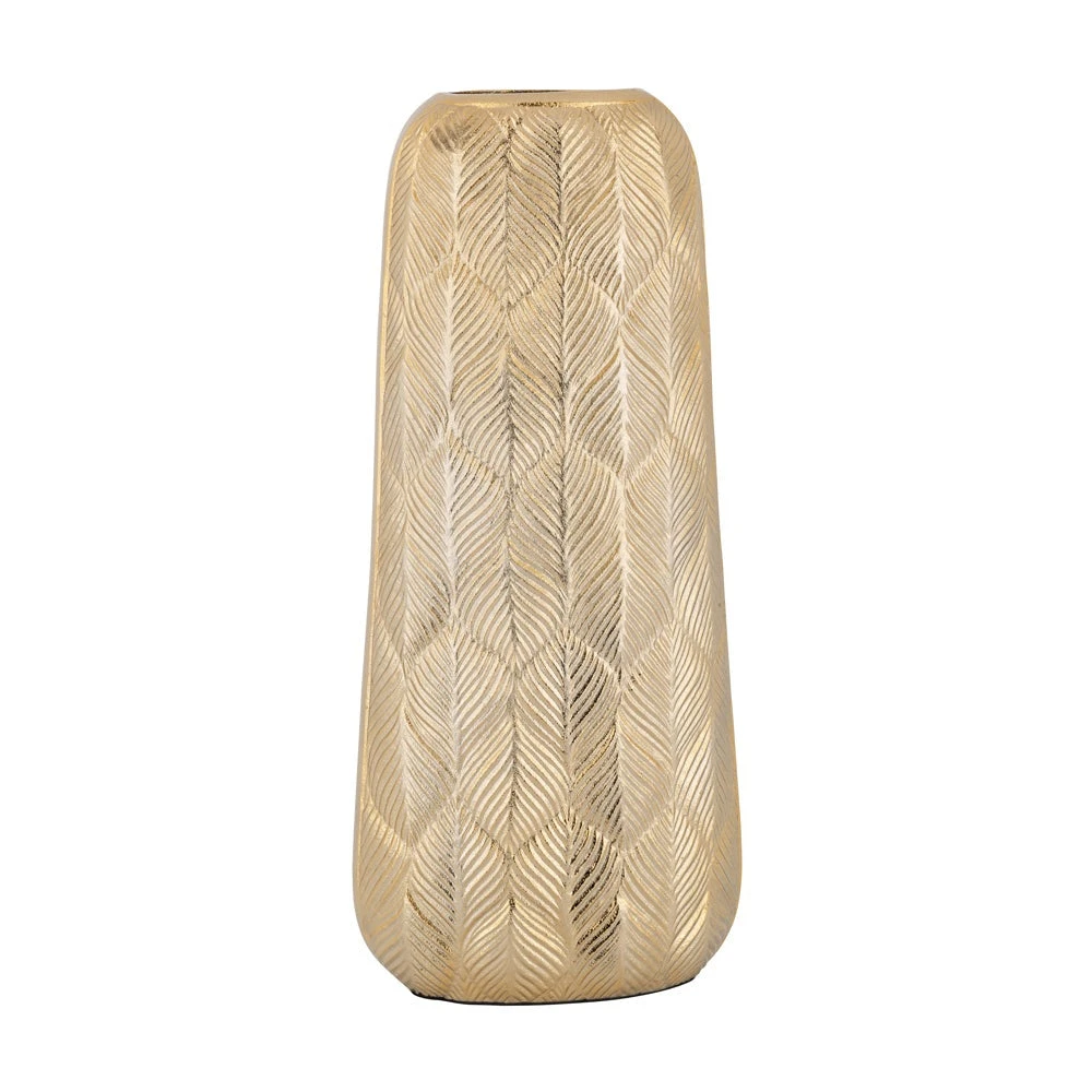 Introducing the Richmond Interiors Mirthe Vase Gold Large, a stunning statement piece to elevate your home decor. Crafted from high-quality aluminium and finished in an opulent gold hue, this vase exudes luxury and sophistication. With dimensions of 44cm in height, 19cm in diameter, and 11cm in width, it commands attention with its bold presence. The sleek and contemporary design makes it a versatile addition to any interior space, whether placed on a console table, mantel, or as a centerpiece on a dining table. Its large size allows for showcasing elaborate floral arrangements or standing alone as a striking accent piece. With estimated delivery within 2-4 weeks, the Richmond Interiors Mirthe Vase Gold Large offers the perfect blend of elegance and functionality, making it an essential addition to your home decor collection.