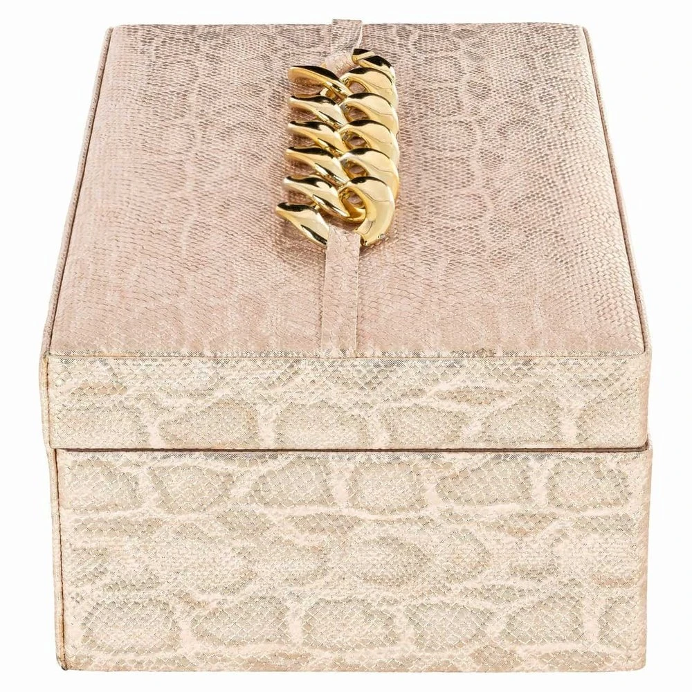 The Richmond Interiors Noell Storage Box adds a touch of luxury to your home. This beautiful box is crafted in a rich pink hue and is perfect for storing books, magazines, and other items. Its sophisticated design makes it a tasteful addition to any interior.