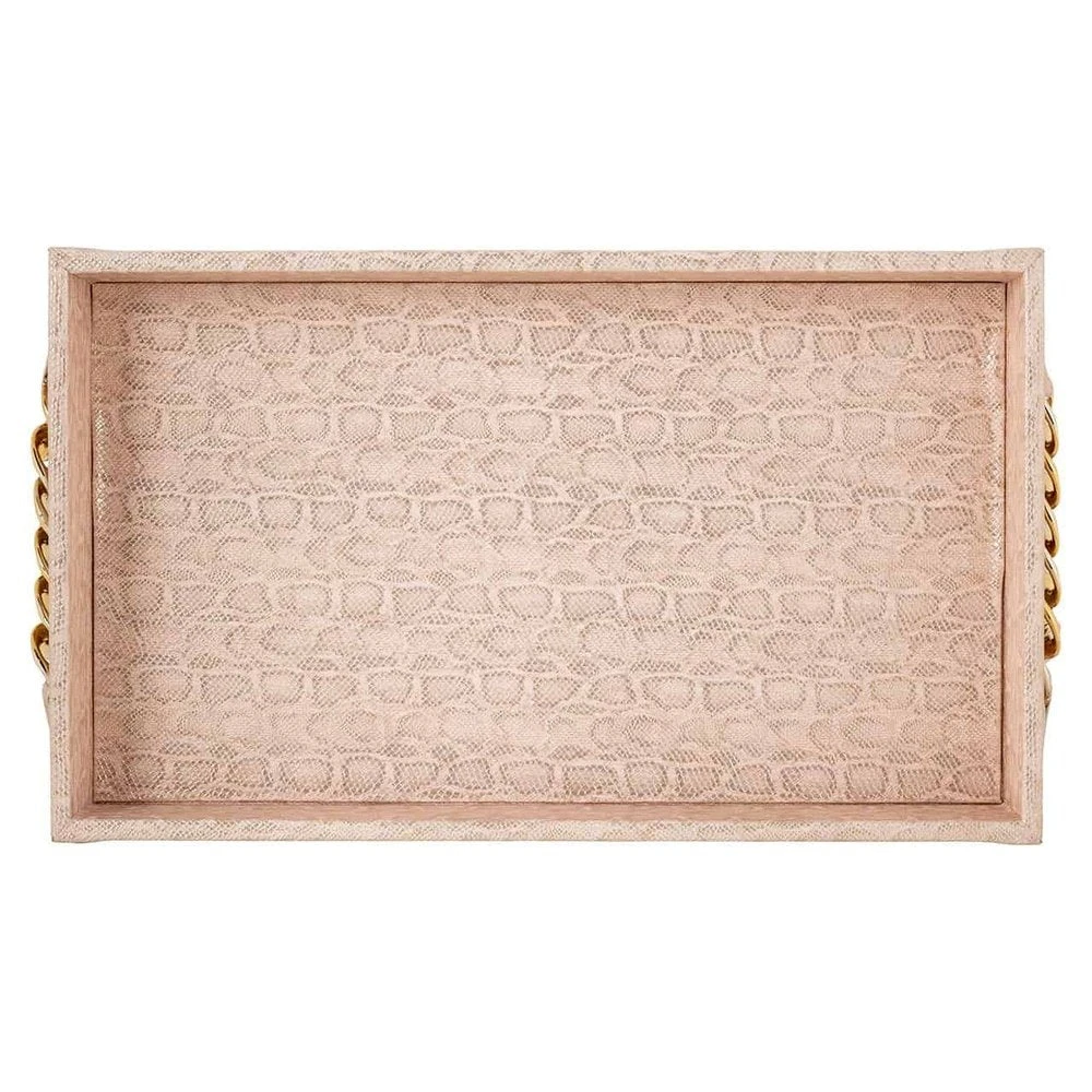 The Richmond Interiors Rowen Tray is a sophisticated addition to any space, distinctive in its elegant pink hue. Crafted from durable materials and expertly designed for a luxe finish, this tray brings a touch of sophistication to your home. Perfect for a glamorous display of hors d’oeuvres, or as a decorative element in any room.