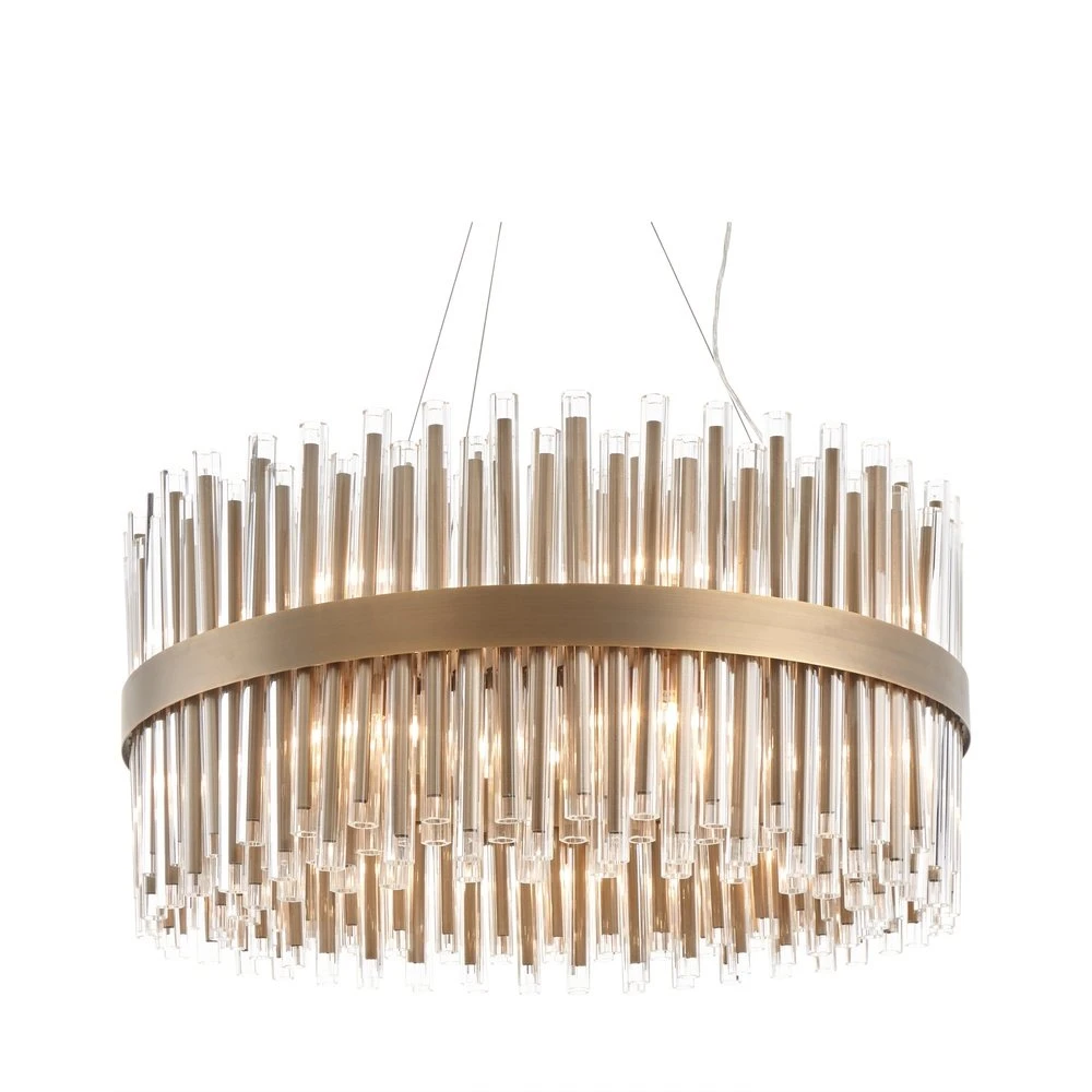 RV Astley’s heavenly Colmar Antique Brass and Clear Glass Round Chandelier is a chic, contemporary lighting solution for sophisticated interiors.
