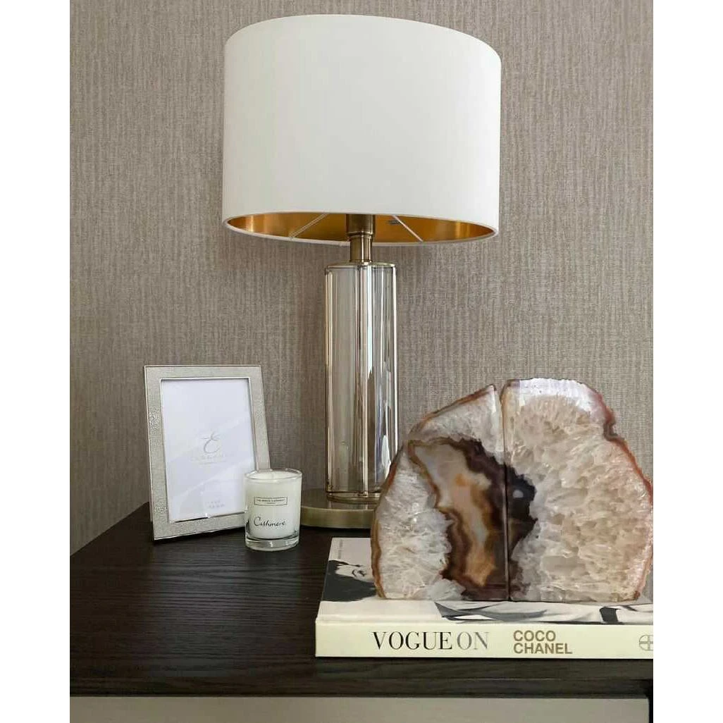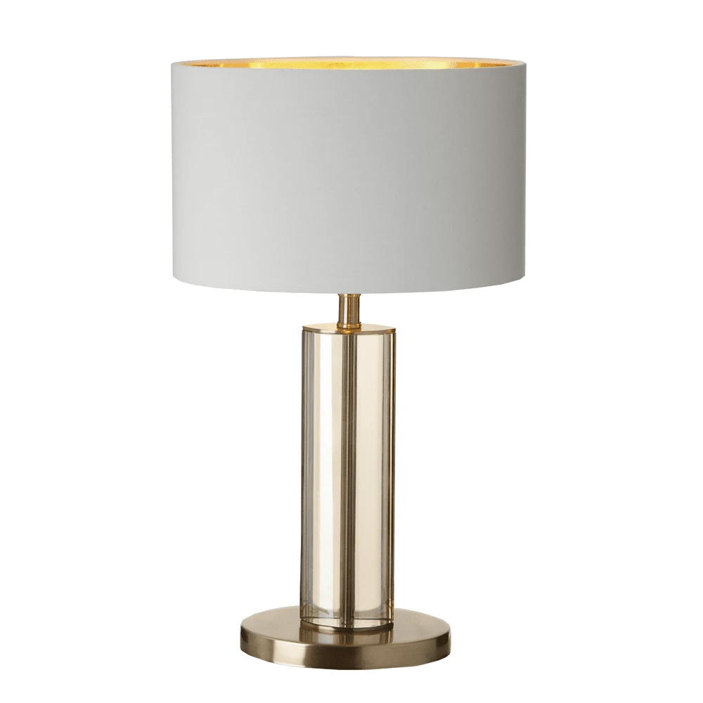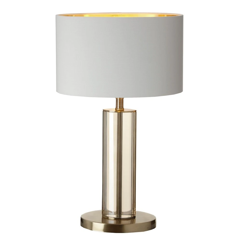 The RV Astley Lisle cognac crystal table lamp is a lighting solution with old-school glamour. The round brass-tinted crystal column on a wide base evokes all the splendour of Edwardian design, while the minimalist circular lampshade brings a modern update to a timeless style.