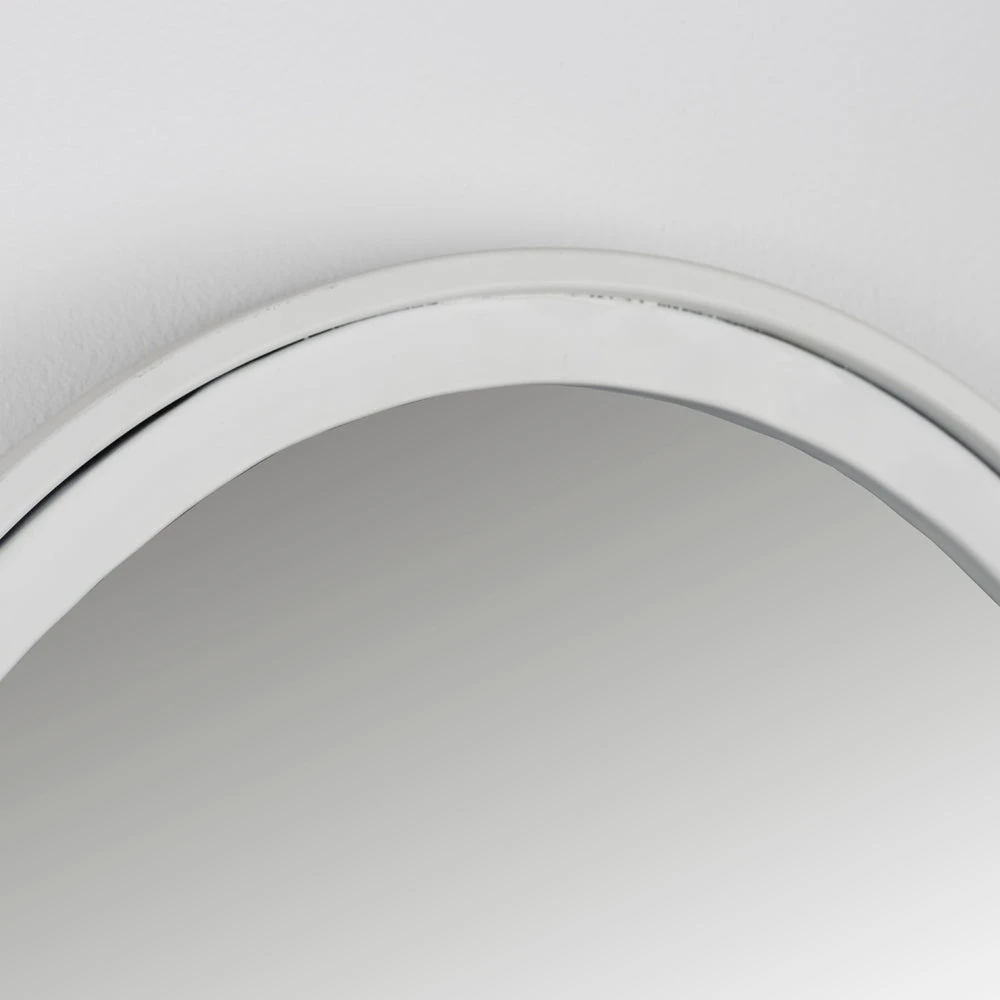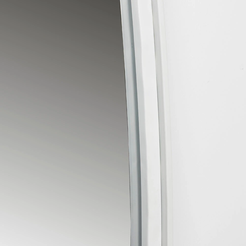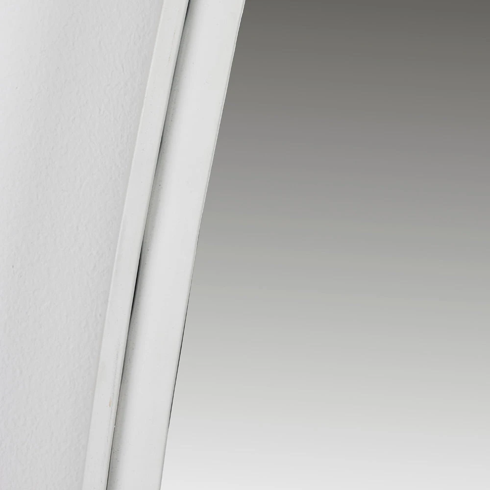 This impressive mirror is constructed from a white, powder-coated iron frame which borders the main mirror plate. The white frame will complement any decoration and style in your home and will bring a contemporary glamour to any living space.